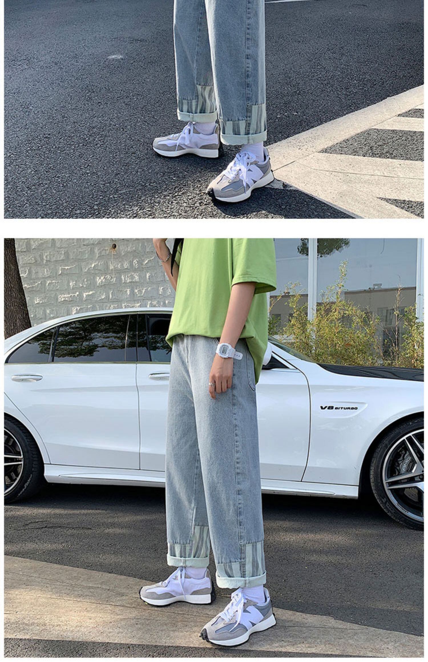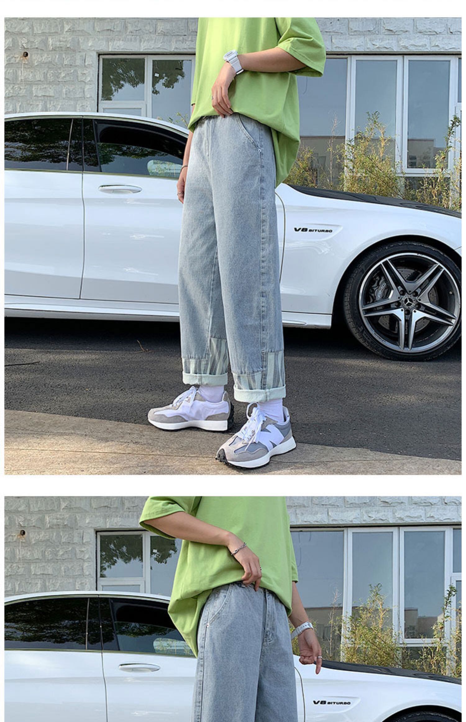 ジーンズ サマー薄手スタイルルーズカジュアルパンツ レッド ストリート 夏物 ステッチ 7/14 mi2047903118041