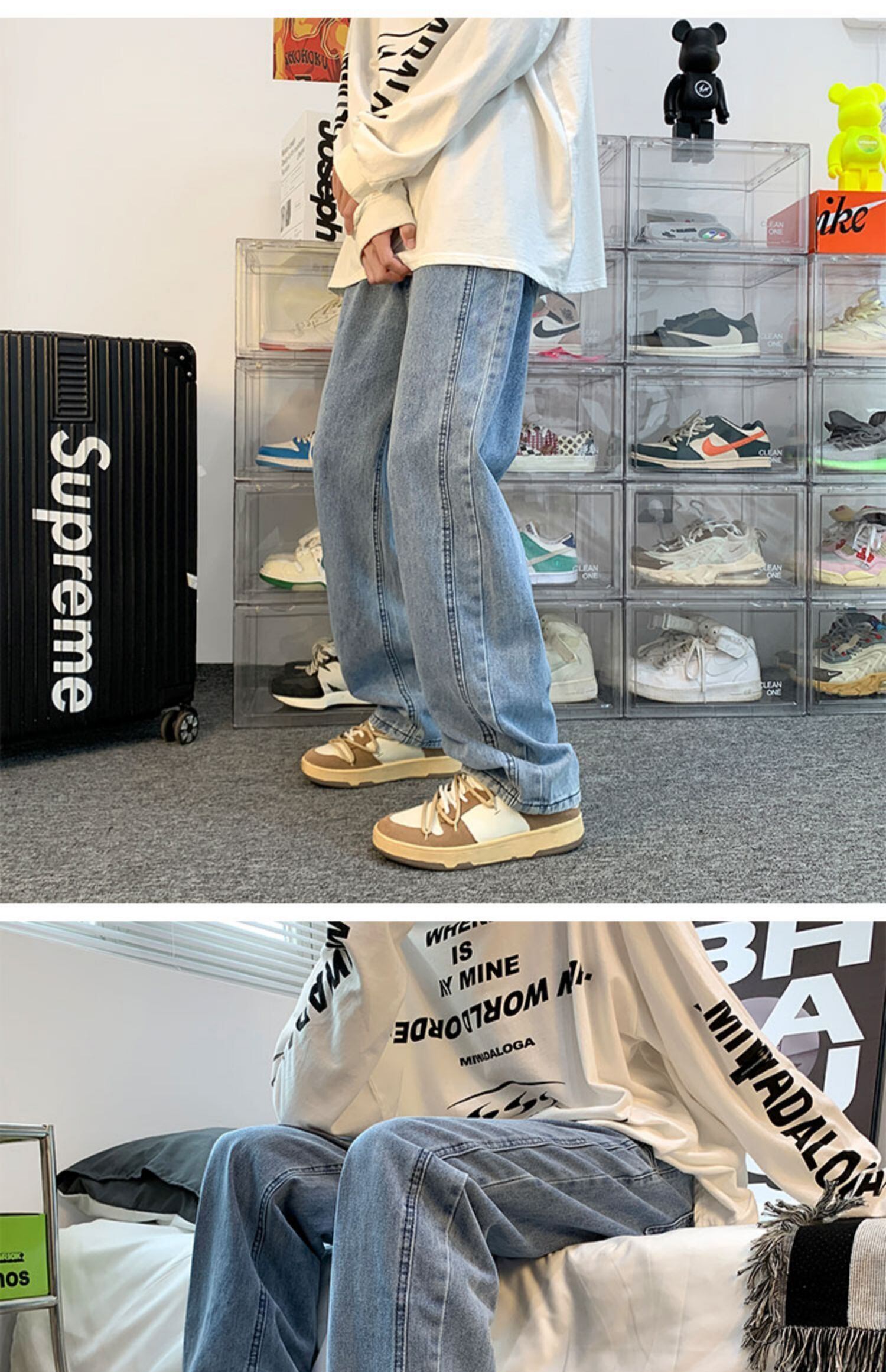 ジーンズ サマー薄手ルーズワイドレッグソリッド カラーカジュアル ストリート 夏物 ワイドパンツ ソリッドカラー 7/14 mi2028407730835
