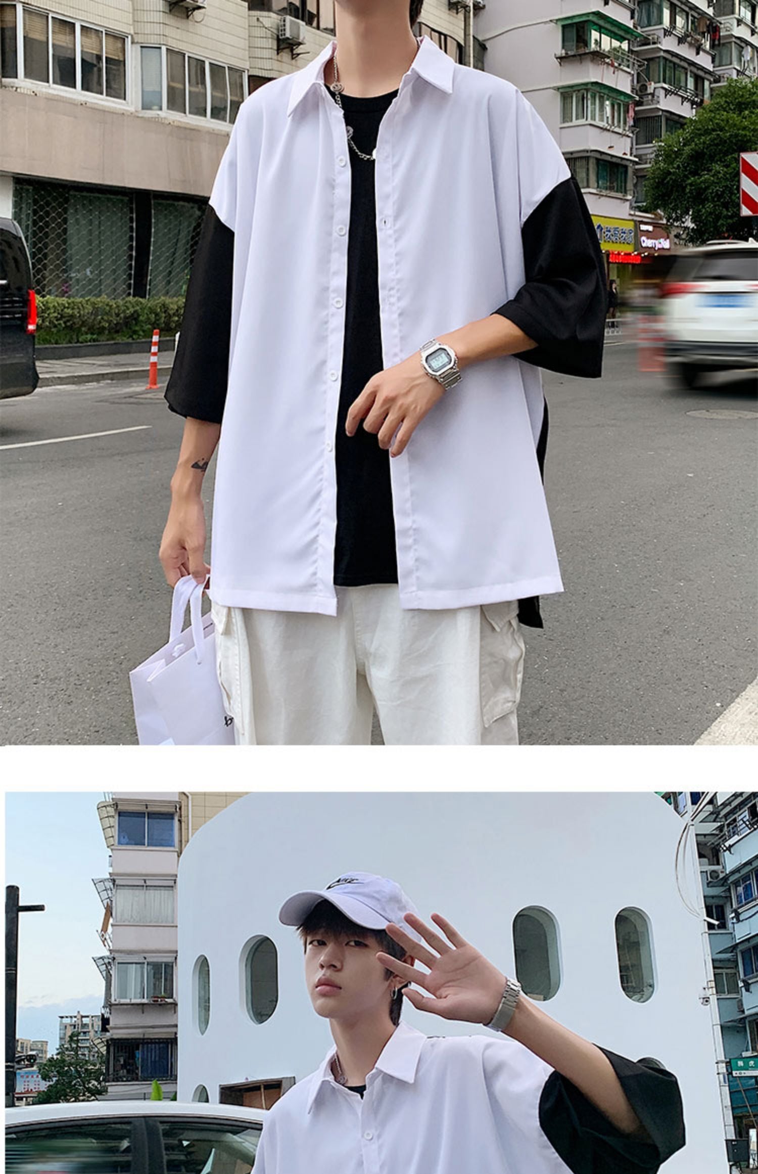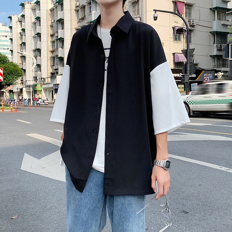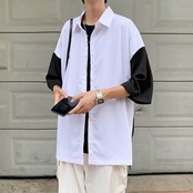 スタイルシャツ ルーズソリッド カラー ソリッドカラー ステッチ 7/14 mi2060208114249