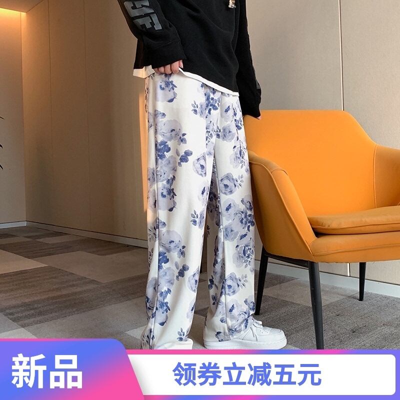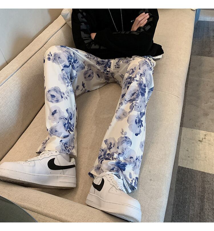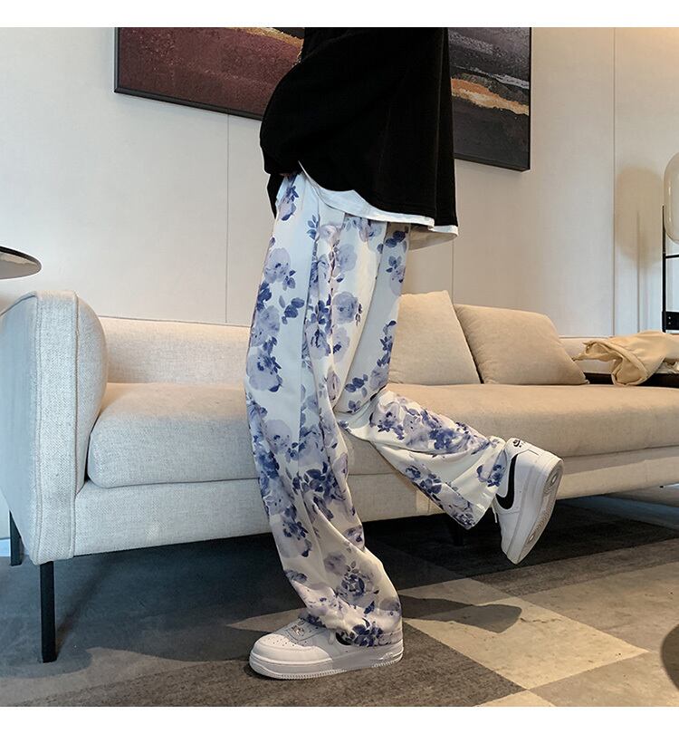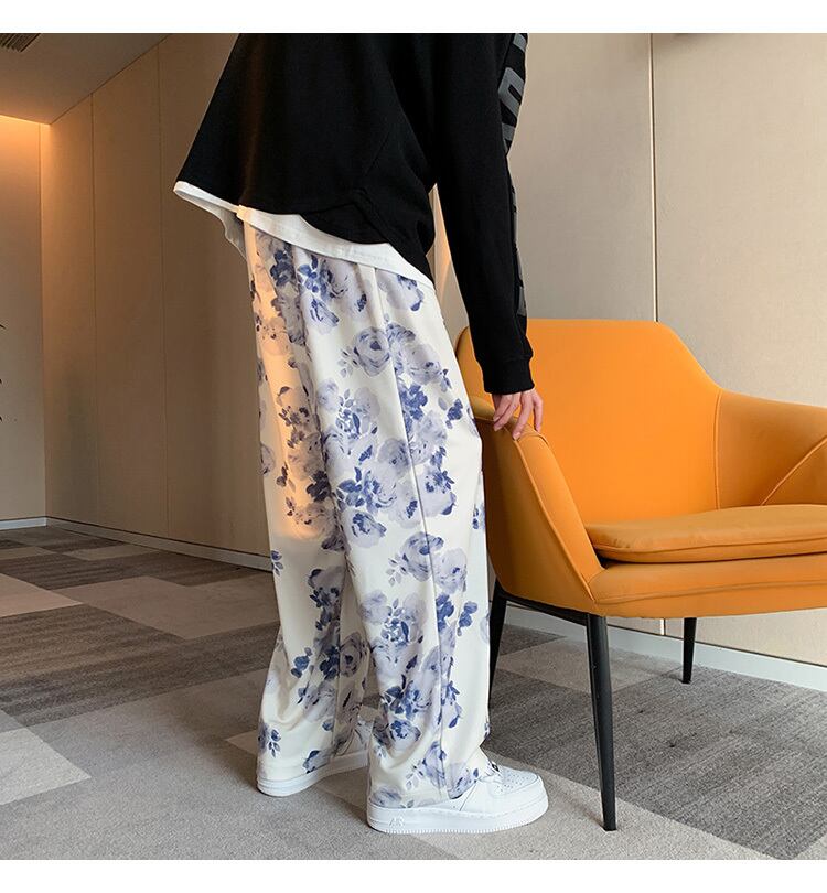 スタンダードフローラルカジュアルパンツ ルーズスキニー レトロ ストリート 花柄 7/14 mi2069852497539