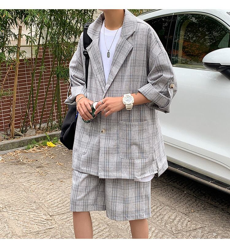 スリーブ格子柄カジュアルスタイルルーズパンツ ストリート 7/14 mi2054546903591