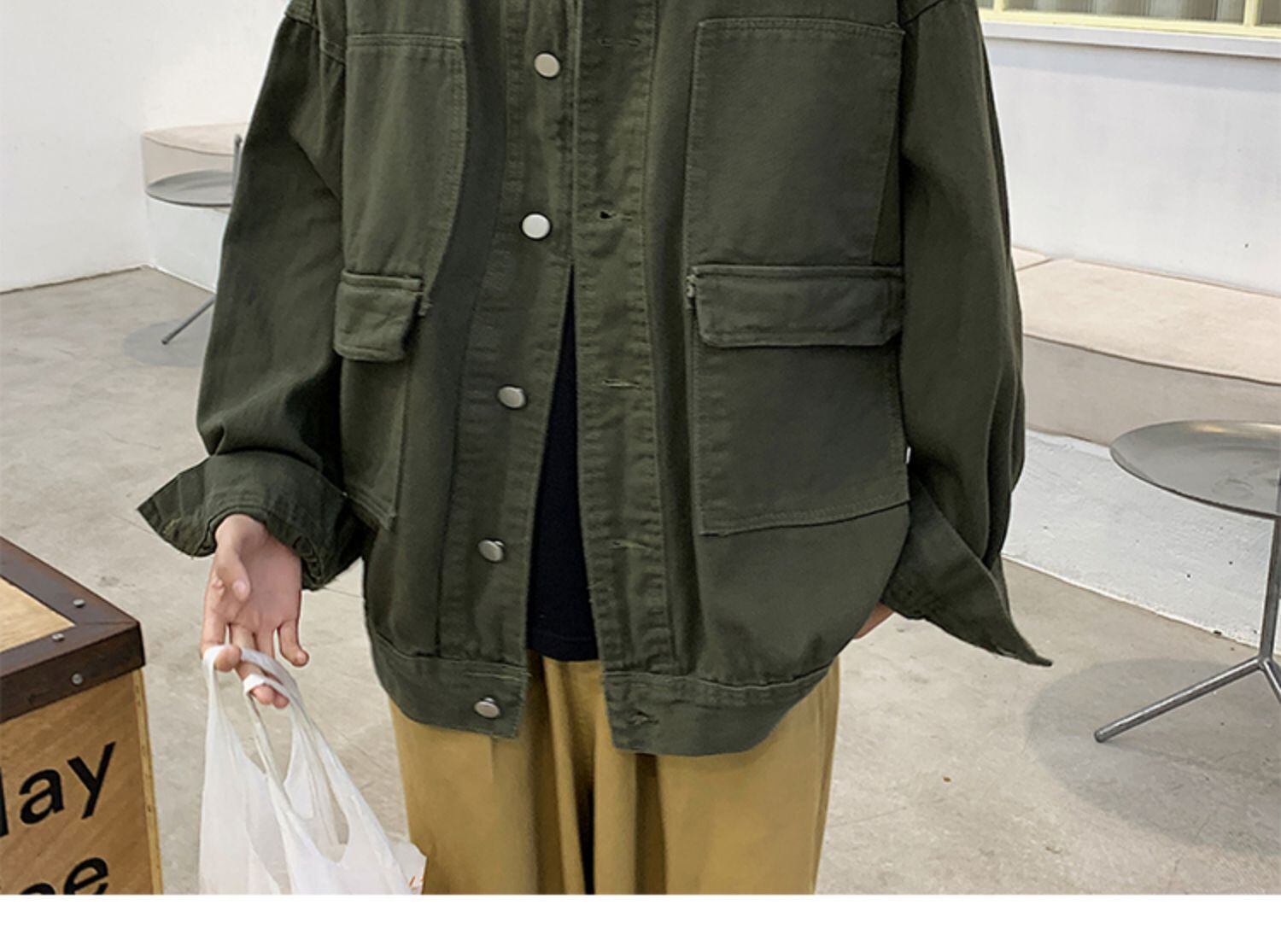 スプリングオータムジャケット スタイルルーズトップス ブラック 春物 秋物 7/14 mi2011292076880