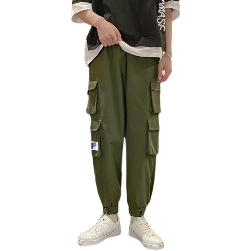 オーバーオール グリーンカジュアルパンツ ストリート ポケット多め マルチポケット 7/14 mi2046110826545