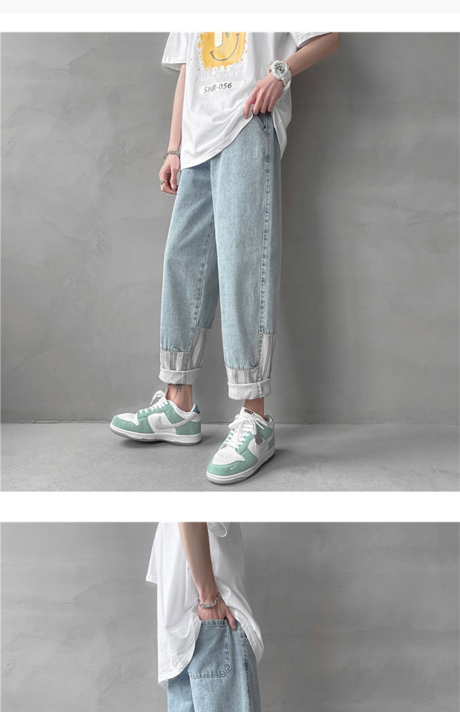 ジーンズ サマー薄手スタイルルーズカジュアルパンツ レッド ストリート かわいい 夏物 ステッチ 7/14 mi2087151592441