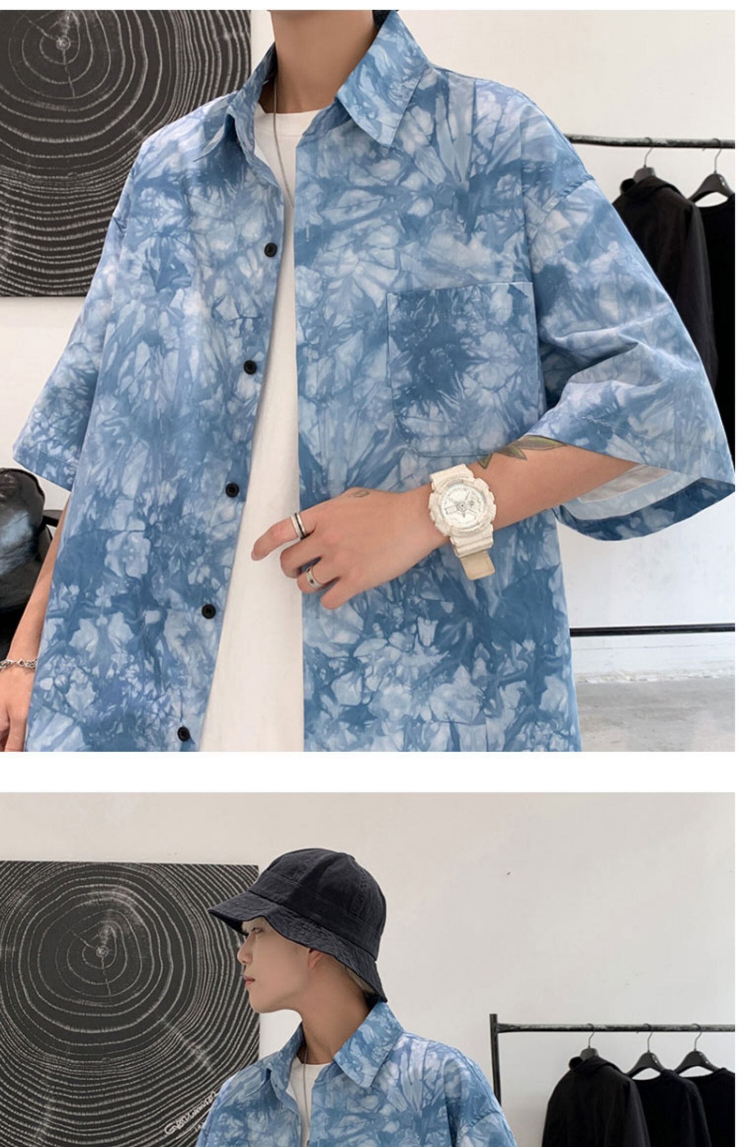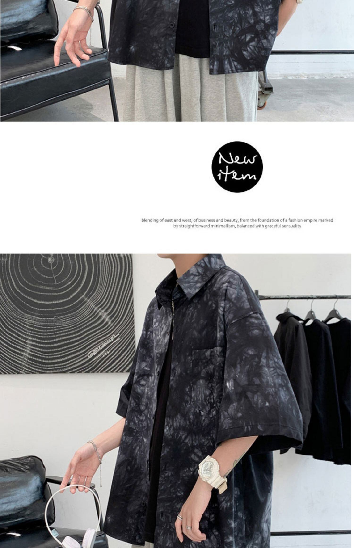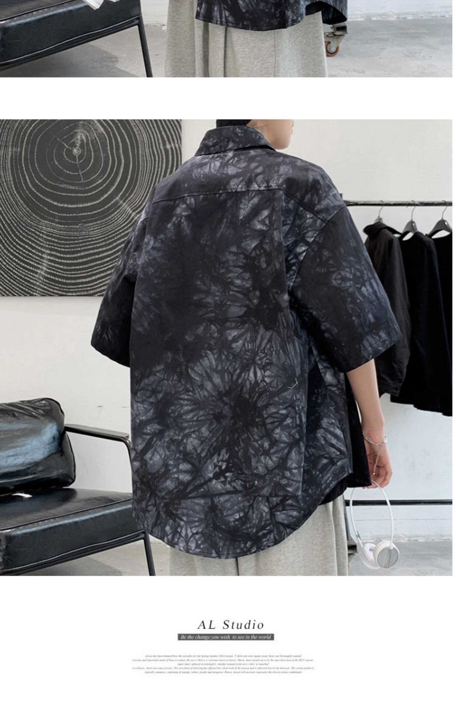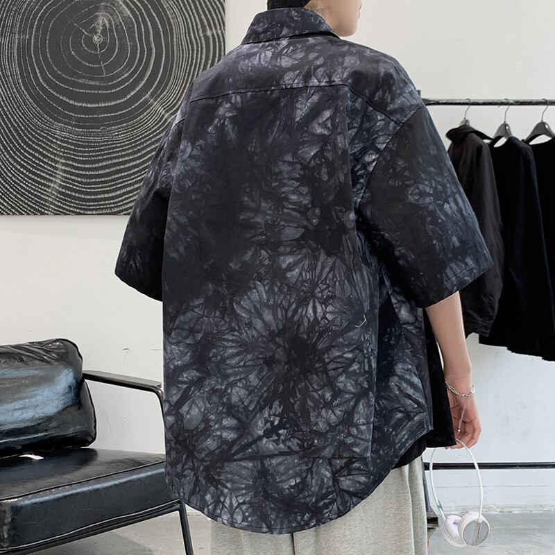 サマースリーブシャツ スタイルダークブラックルーズカジュアル 夏物 シルク 7/14 mi2091796285900
