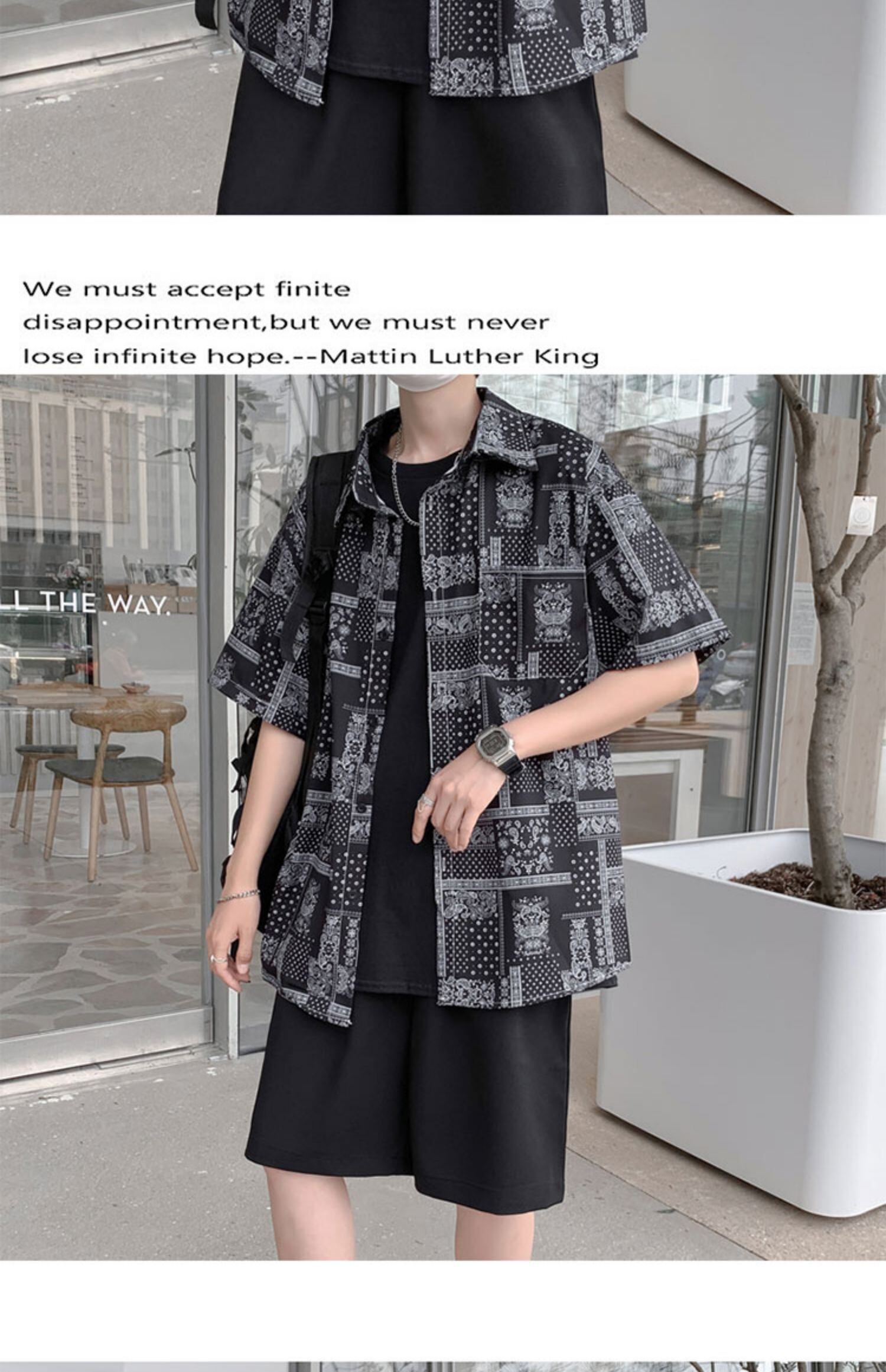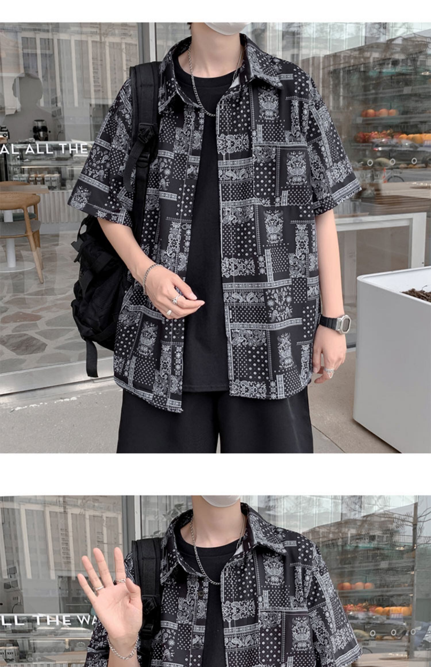 レッドFlowerデザイン シャツ ルーズカジュアルジャケット フラワーデザイン 7/14 mi2041765782013