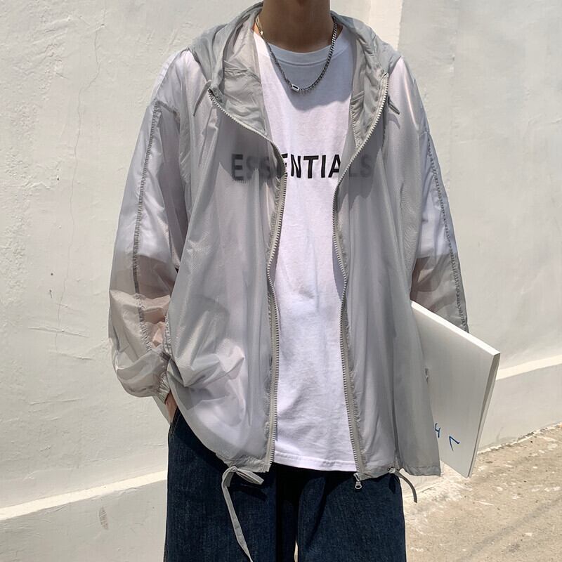 シングルソリッド カラーフードサマー薄手ルーズカジュアル長袖スリーブジャケット ロング 夏物 ソリッドカラー 7/14 mi203903290308