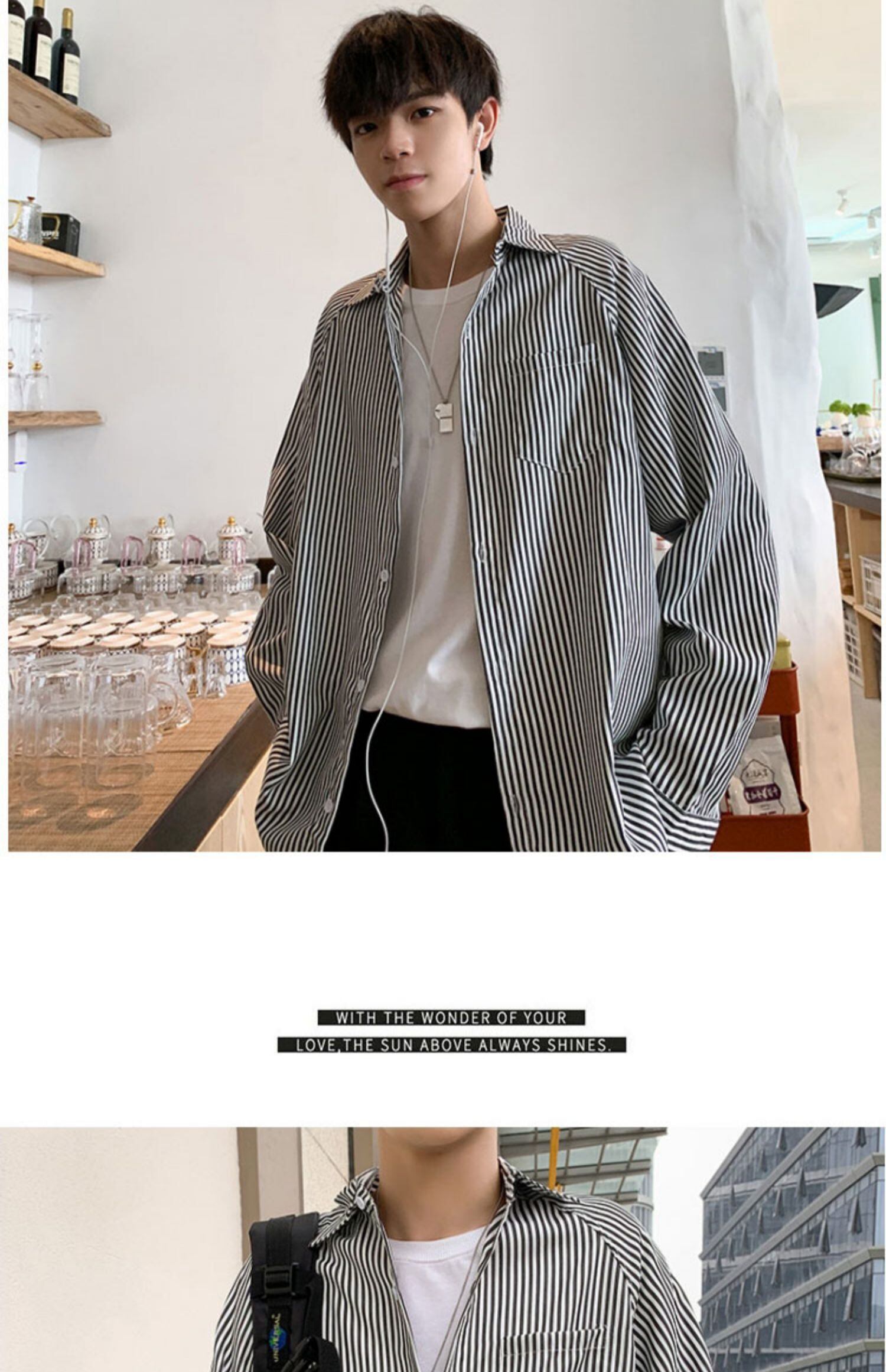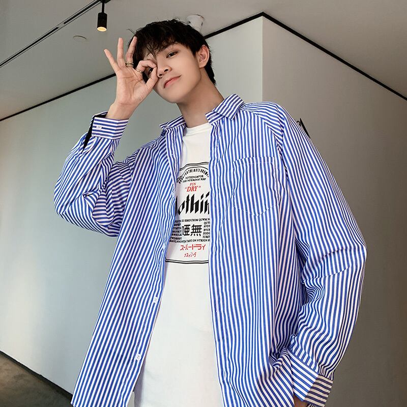 ストライプシャツ スプリングオータムスタイルルーズ長袖スリーブカジュアル ロング 春物 秋物 7/14 mi2041047739407