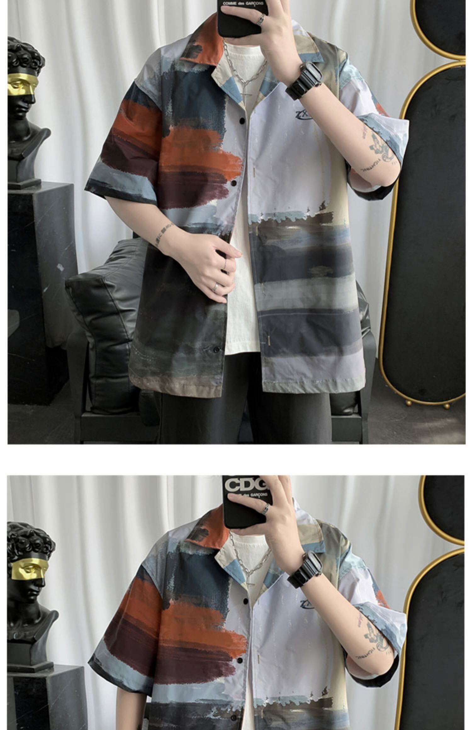 プリントスリーブシャツ サマースタイルスタンダードルーズカジュアル レトロ 夏物 7/14 mi2027613800986