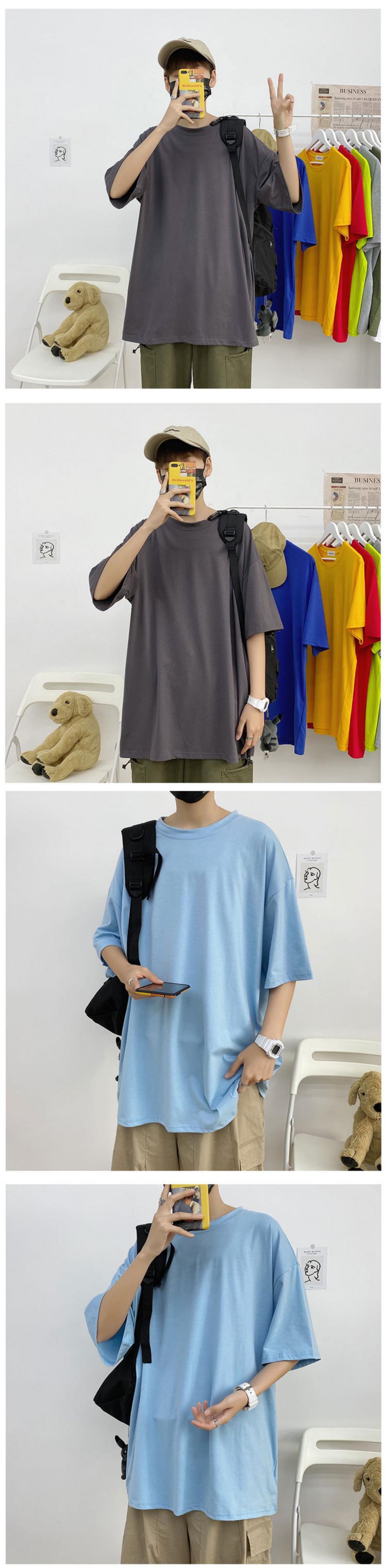 スリーブソリッド カラーTシャツ シャツ ベーシック ソリッドカラー 7/14 mi2024000141935