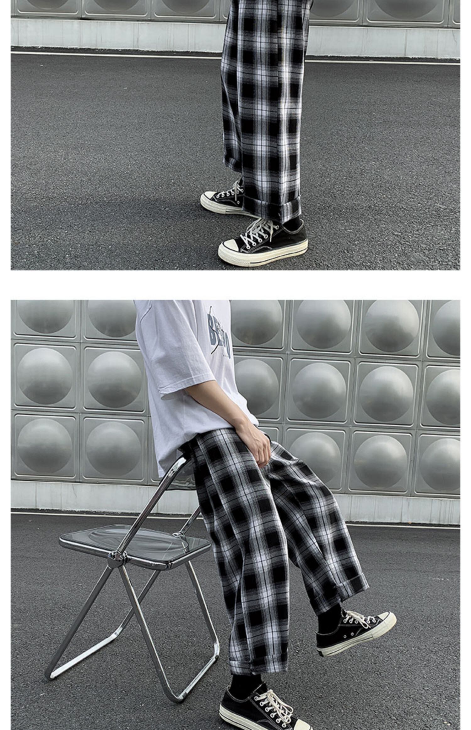 ブラックホワイト格子柄パンツ サマー薄手ルーズカジュアル 夏物 7/14 mi20579825157