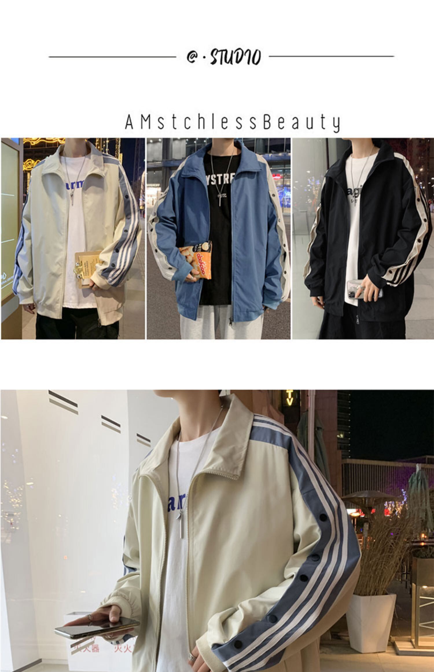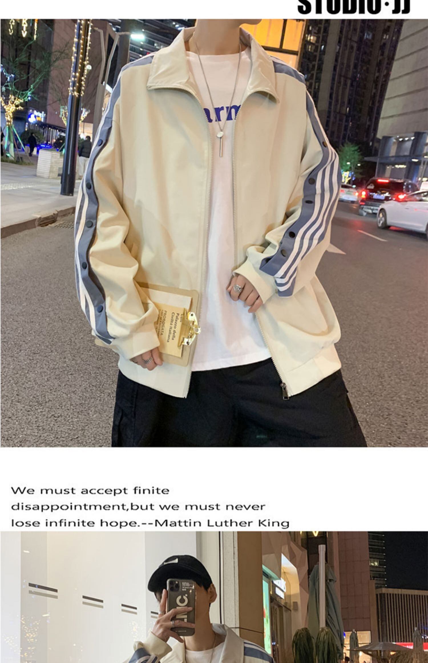 ジャケット スプリングオータムルーズカジュアルカラー ストリート 春物 秋物 ストライプ 7/14 mi2037690939292