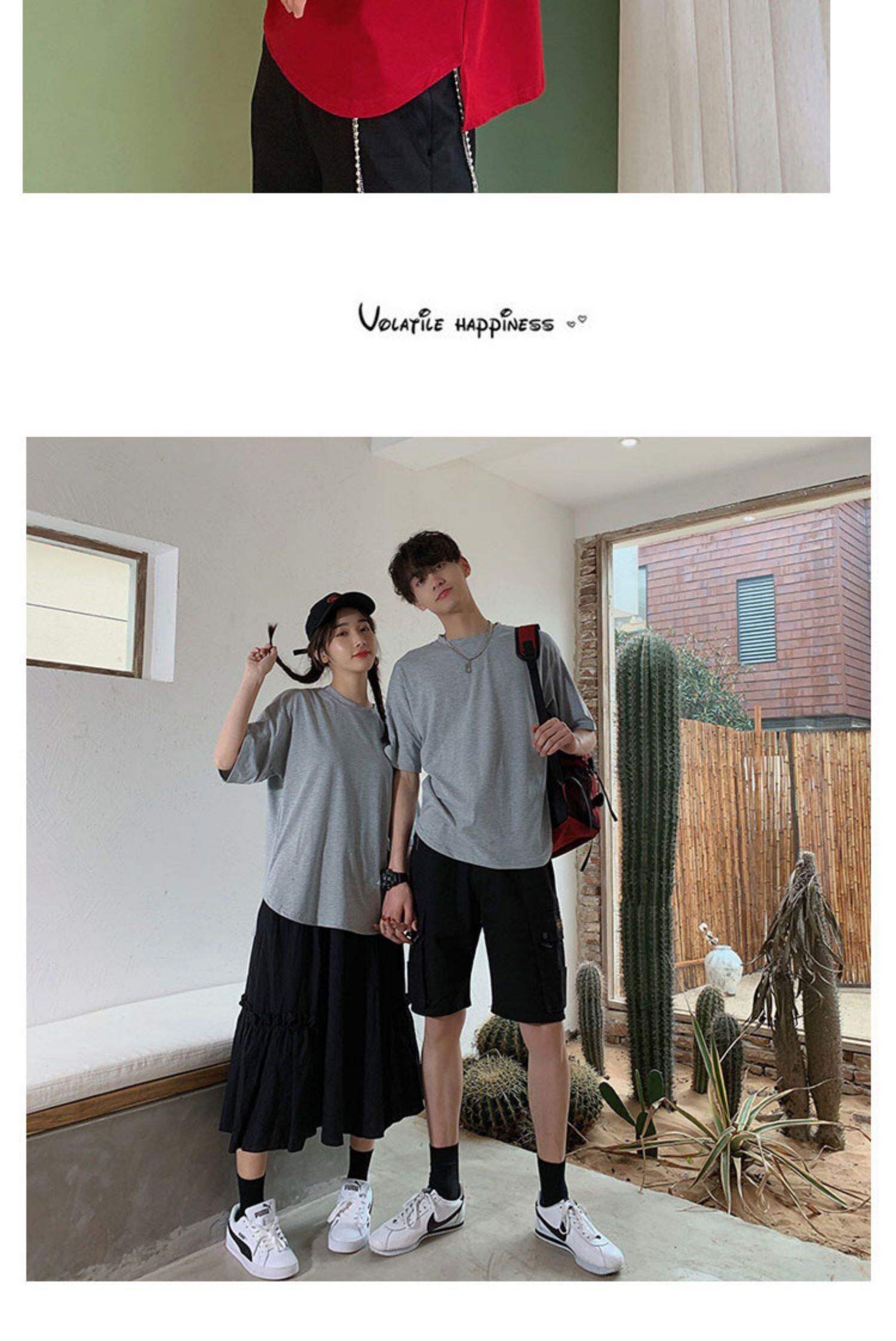 サマースリーブTシャツ ルーズソリッド カラーショート 半袖 ハーフスリーブ 夏物 ソリッドカラー 7/14 mi2043642309504