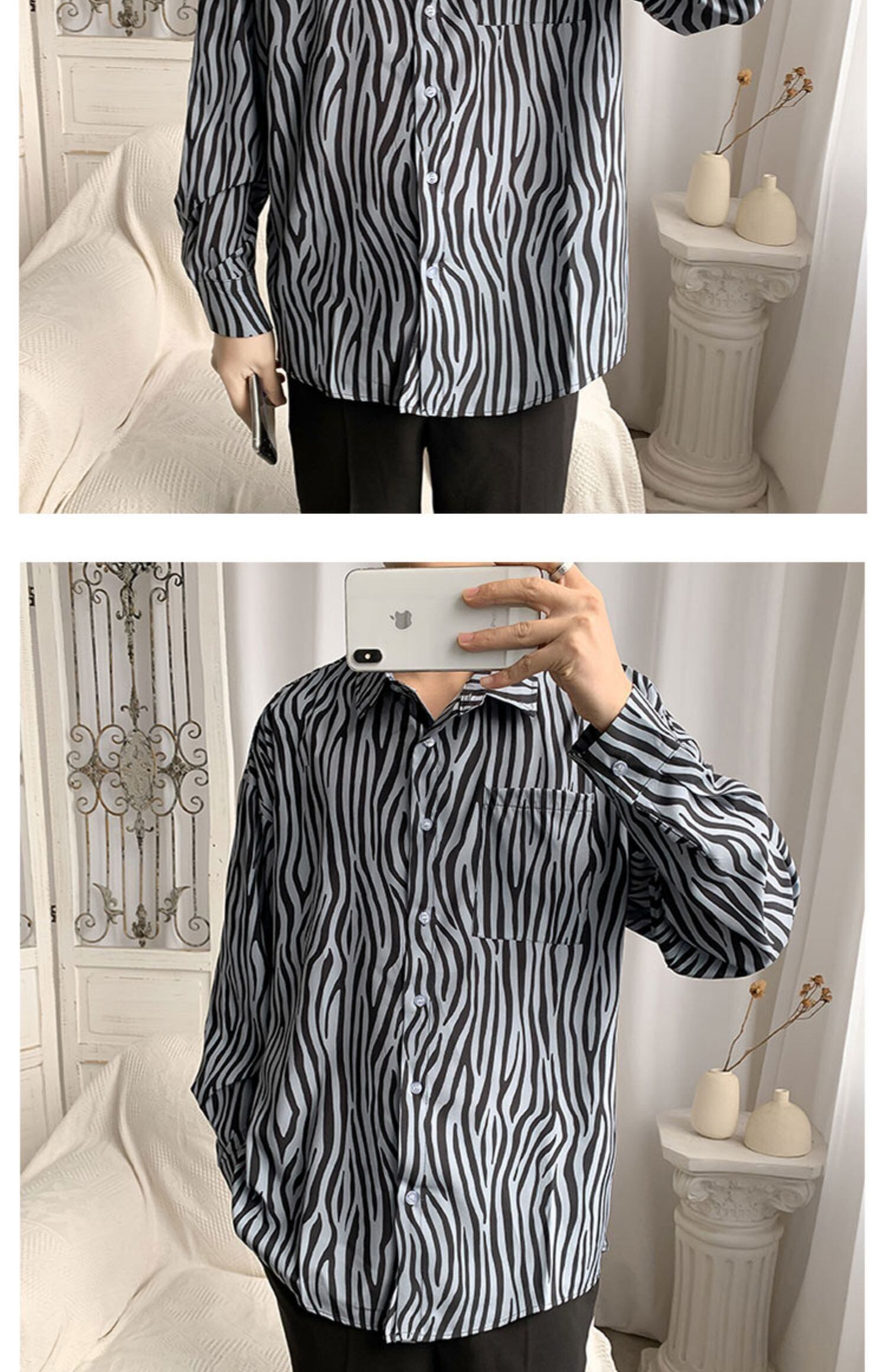 パターンシャツ ルーズスプリングオータムストライプ ロング 春物 秋物 7/14 mi2016647296876