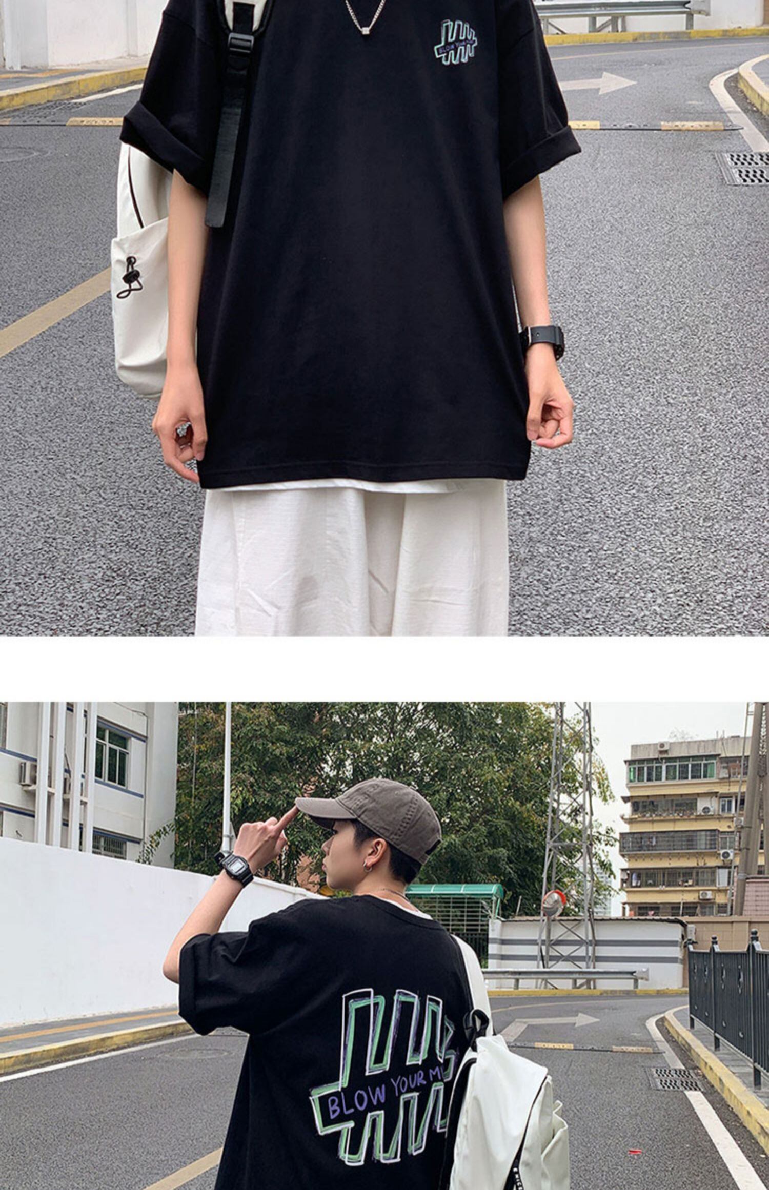 サマーTシャツ プリントルーズラウンドネックトップス ストリート 夏物 Oネック 7/14 mi2018002566199