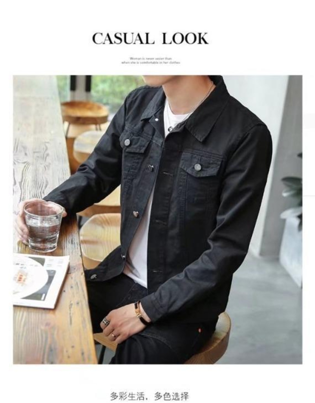 色:ピュアレッドのダブルポケットデニムジャケット,ピュアブラックのダブルポケットデニムジャケット,ピュアホワイトのダブルポケットデニムジャケット,偽のツーピースグレーフード付き,フェイクツーピースブルーフード