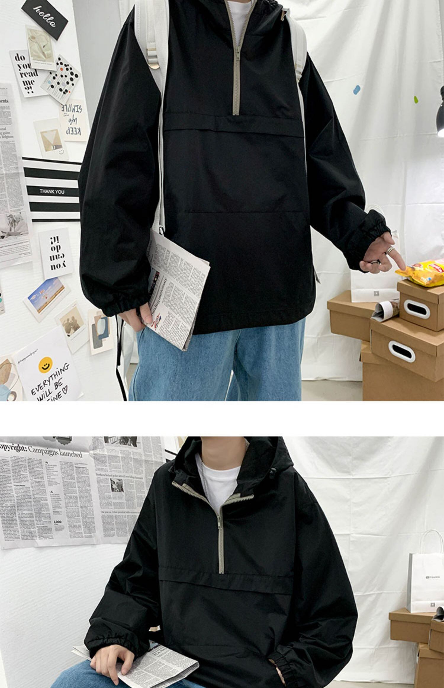 ジッパーセーター スタンダードソリッド カラーフードジャケット レトロ ストリート ソリッドカラー ヨーロピアン 7/14 mi2073509164630