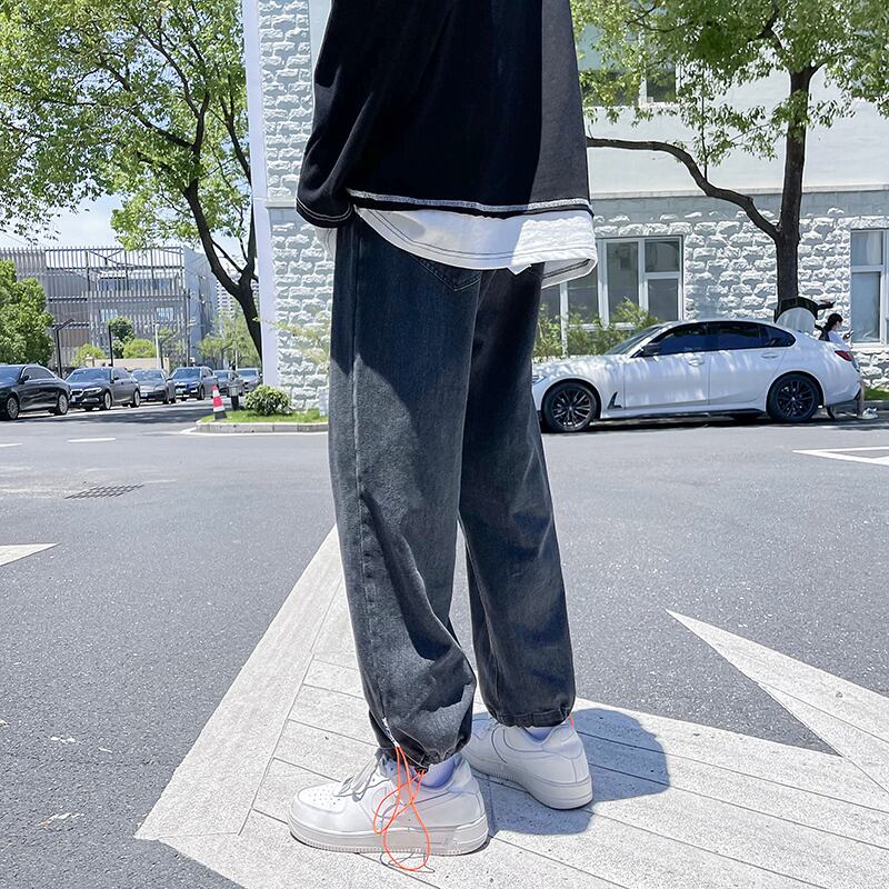 サマーギャザーウェストジーンズ ルーズストレッチカジュアルパンツ レッド エラスティック 伸縮 夏物 7/14 mi2094636220380