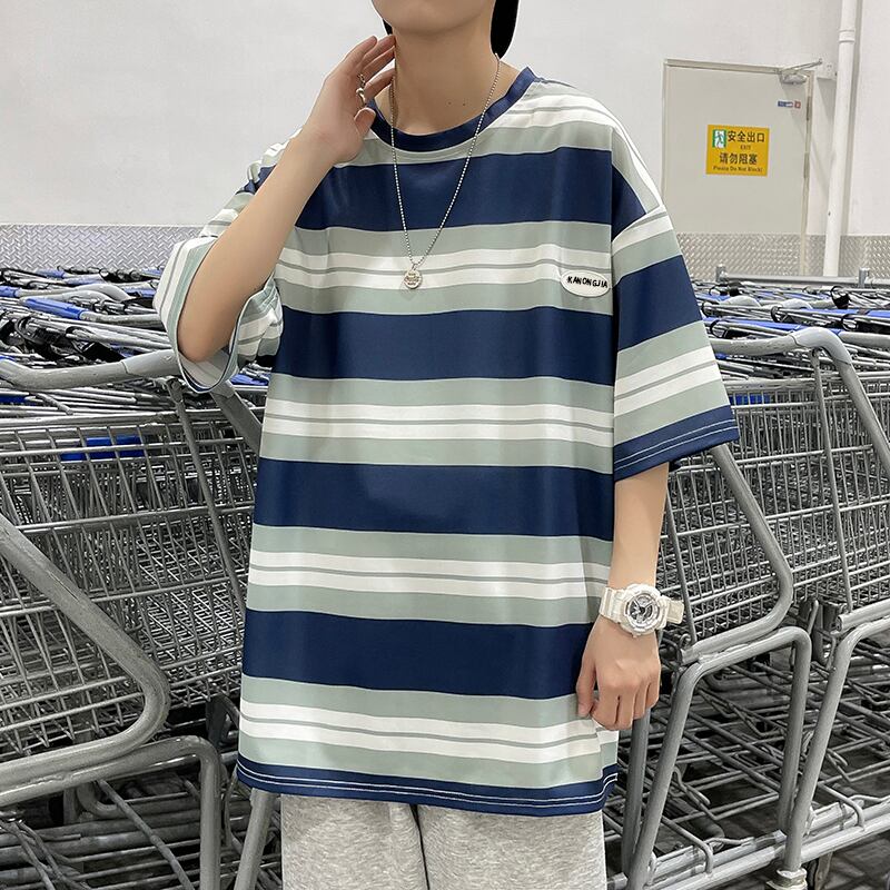 カラーストライプTシャツ シャツ サマースタイルルーズカジュアルトップス 夏物 7/14 mi2026637070230