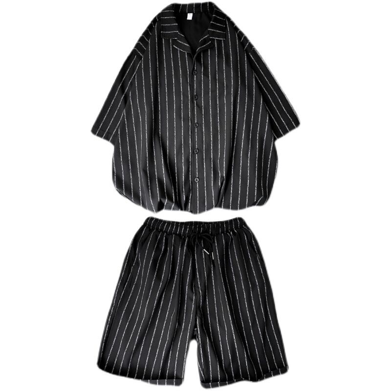 サマーストライプカジュアルルーズシャツ ショーツ セット 夏物 ブルマー 7/14 mi2038888488976