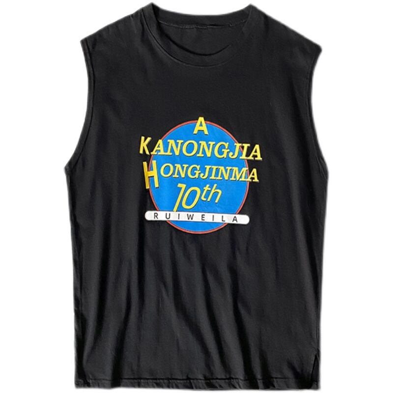 ラウンドネックレディースサマールーズプリントノースリーブTシャツ 夏物 Oネック 7/14 mi2054043777118