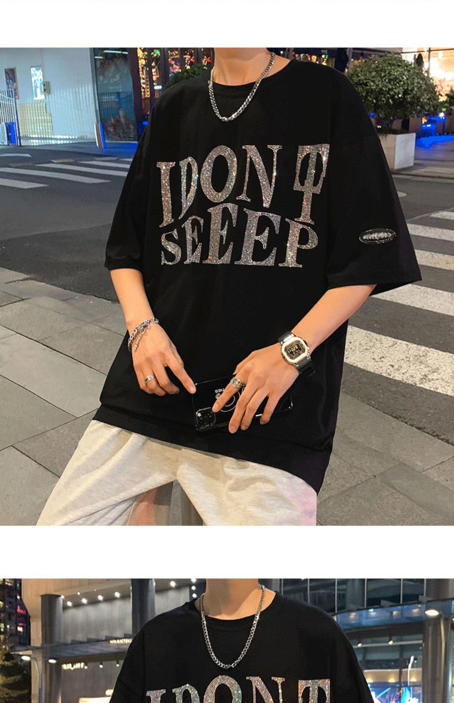ラインストーンTシャツ シャツ ルーズカジュアルサマー ストリート 夏物 7/14 mi2035547666502