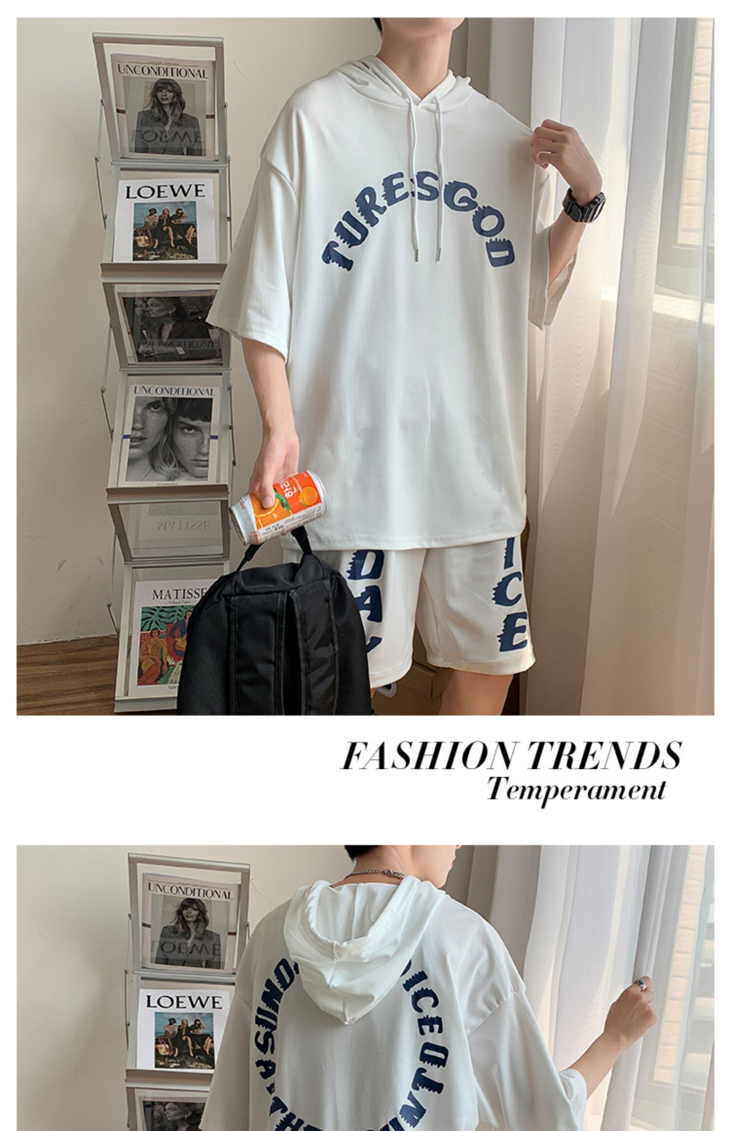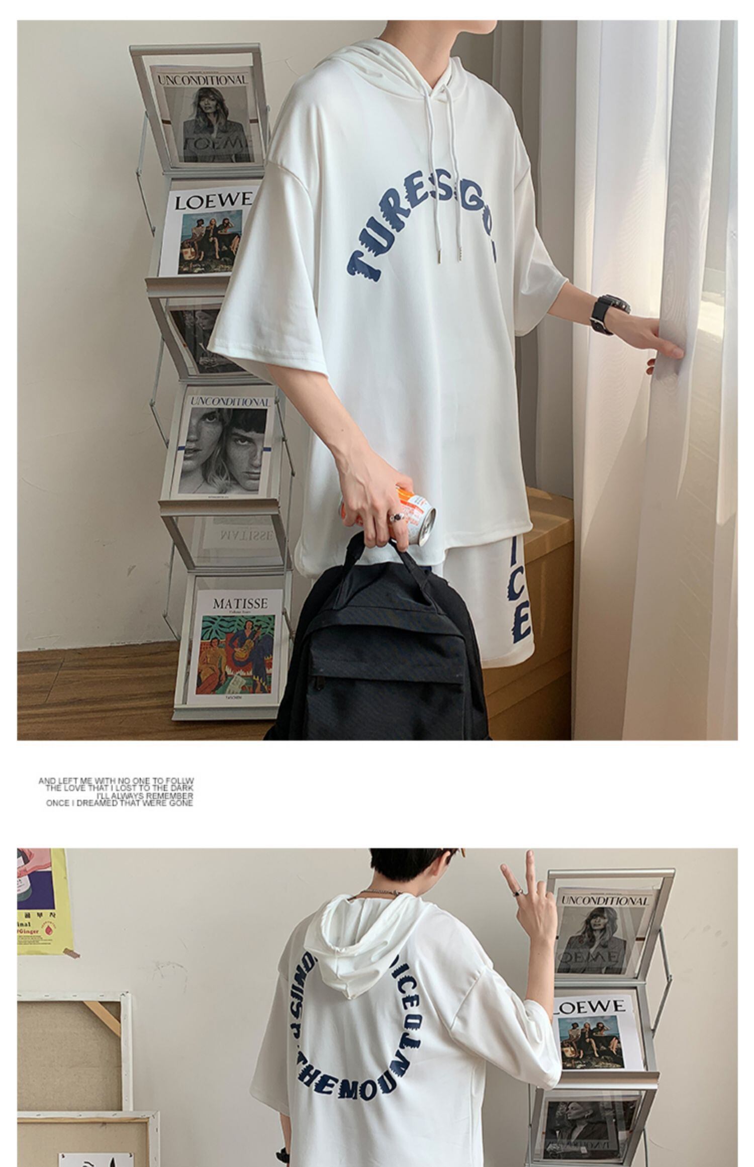 セーター カジュアルサマールーズフードTシャツ ショーツ ストリート 夏物 ブルマー 7/14 mi2027641282390