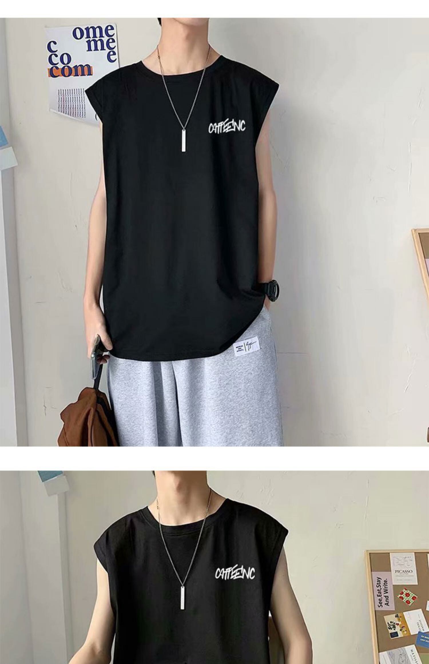 サマーラウンドネックルーズカジュアルノースリーブTシャツ 夏物 Oネック 7/14 mi2016845285720