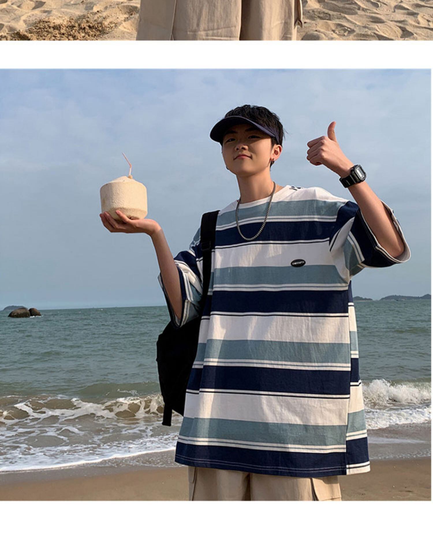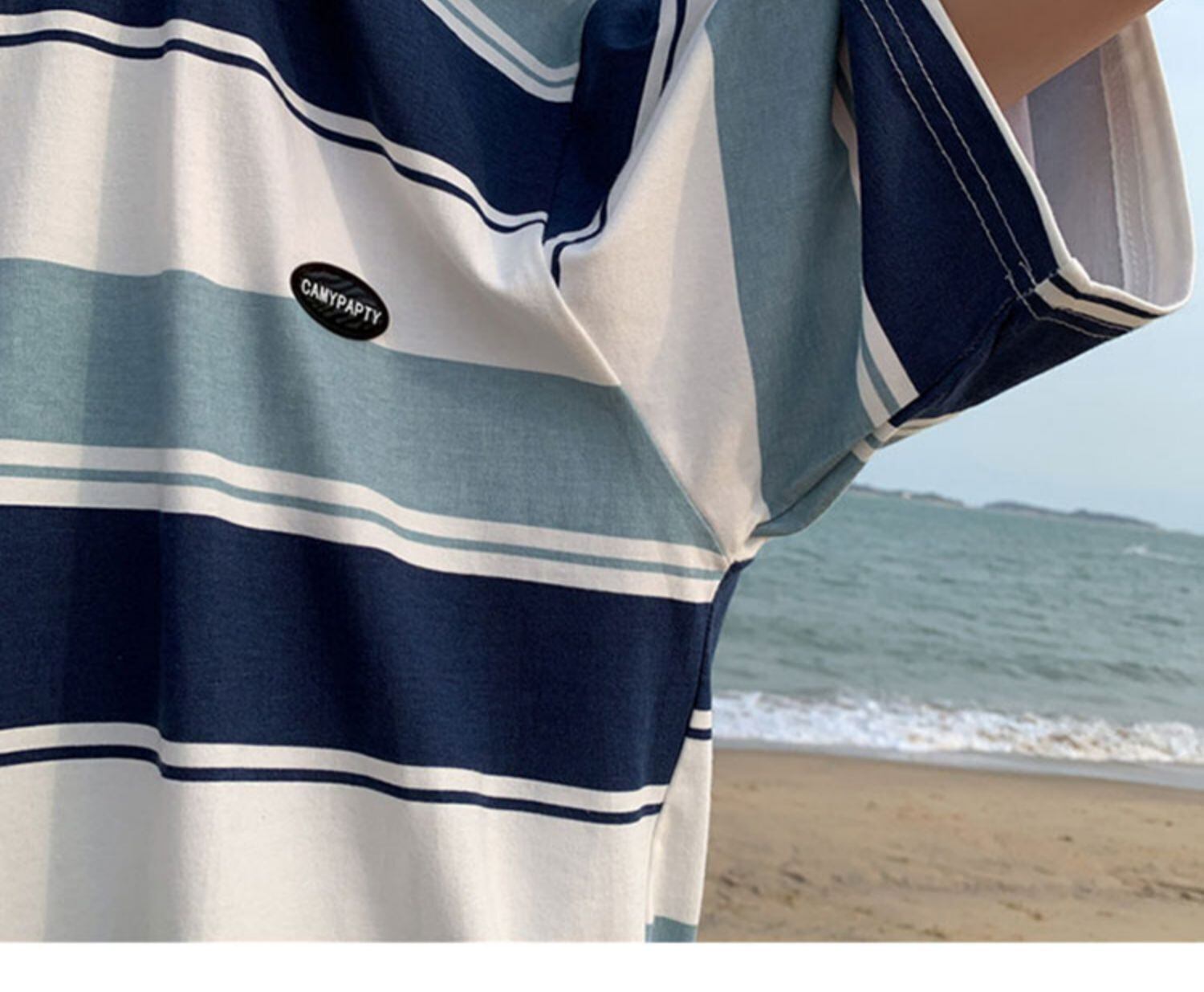 カラーストライプスリーブTシャツ スタイルルーズカジュアルサマー 夏物 7/14 mi2031838093731