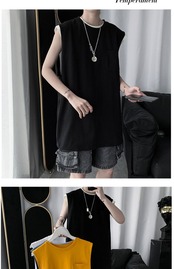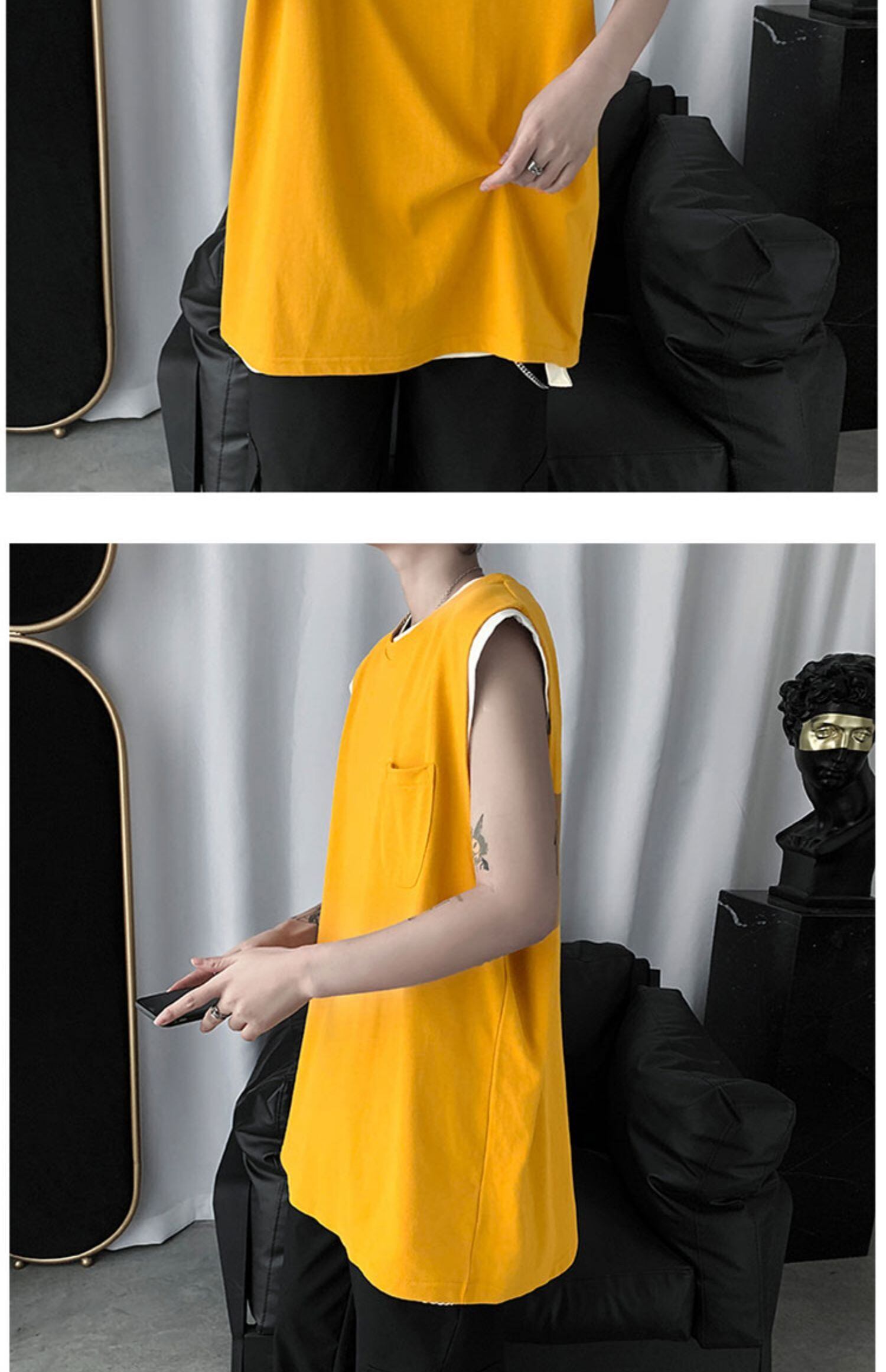 サマーポケットソリッド カラールーズカジュアルノースリーブホワイトTシャツ 夏物 ソリッドカラー 7/14 mi2069056982947