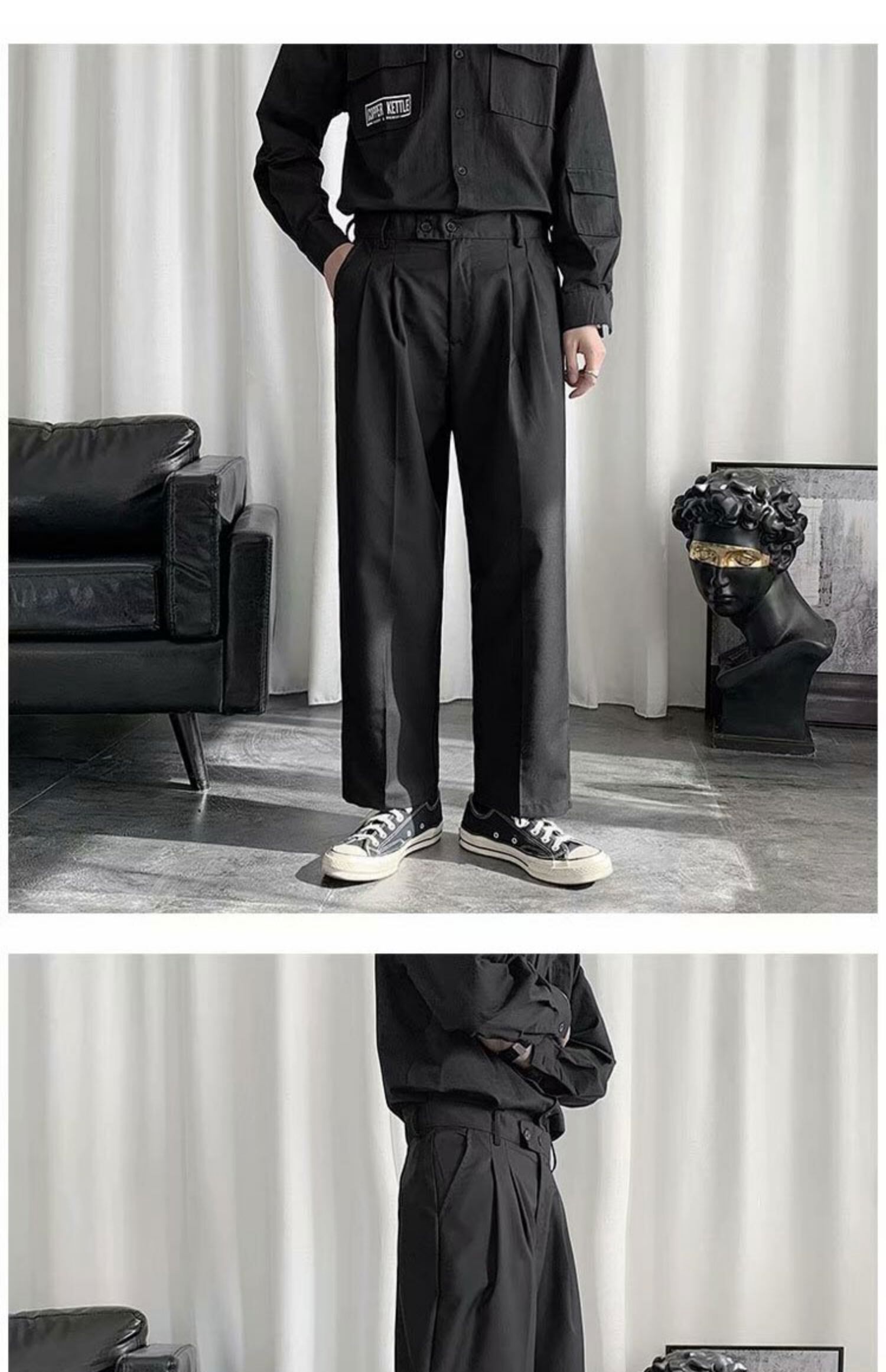 ルーズカジュアルブラック薄手パンツ 7/14 mi2097600469957