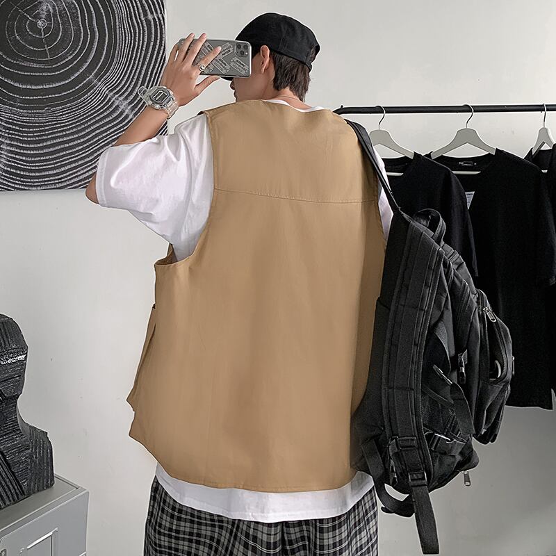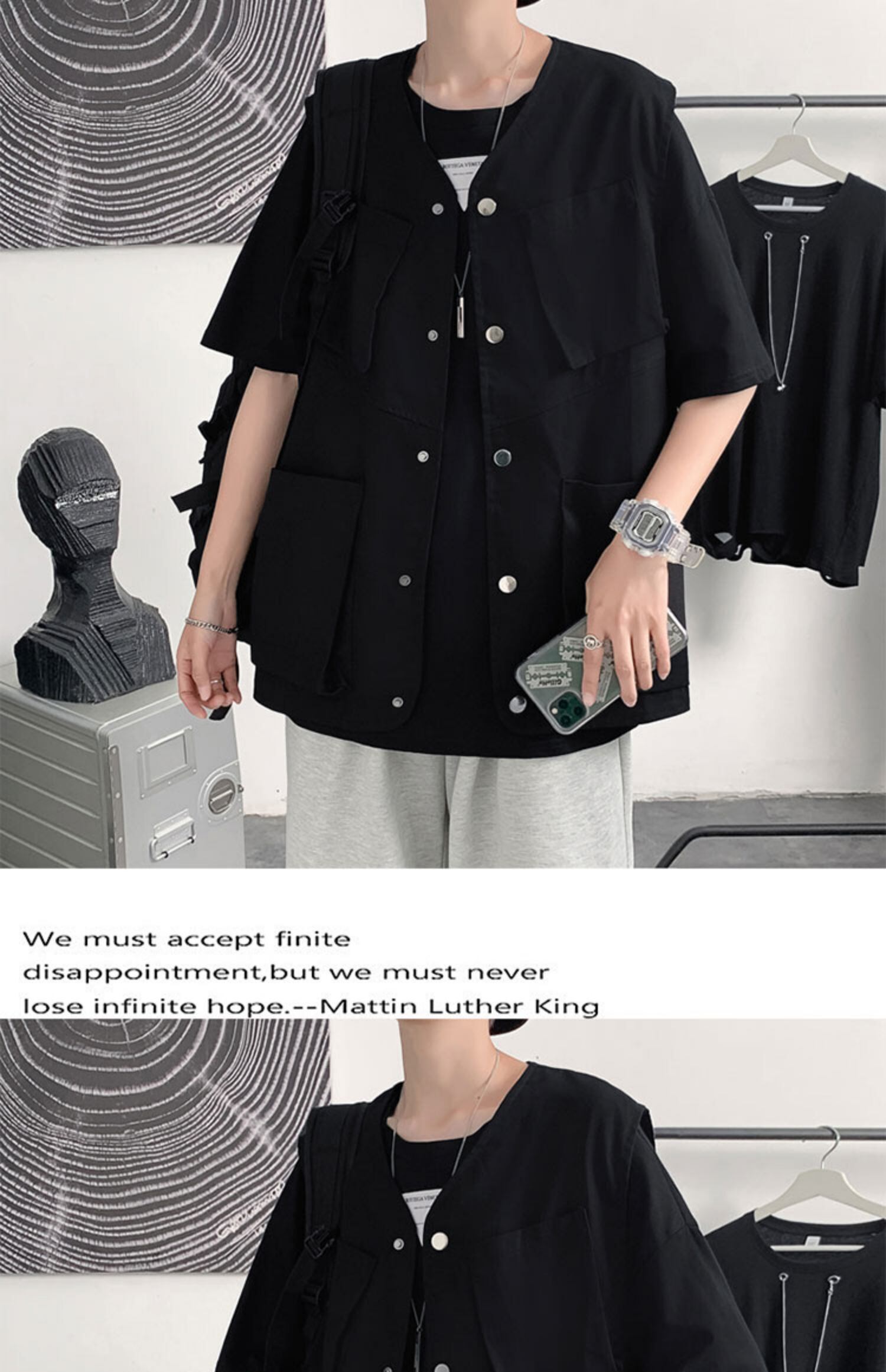 スタンダード自然派ジャケット ルーズノースリーブ レトロ ポケット多め マルチポケット 7/14 mi209802025650