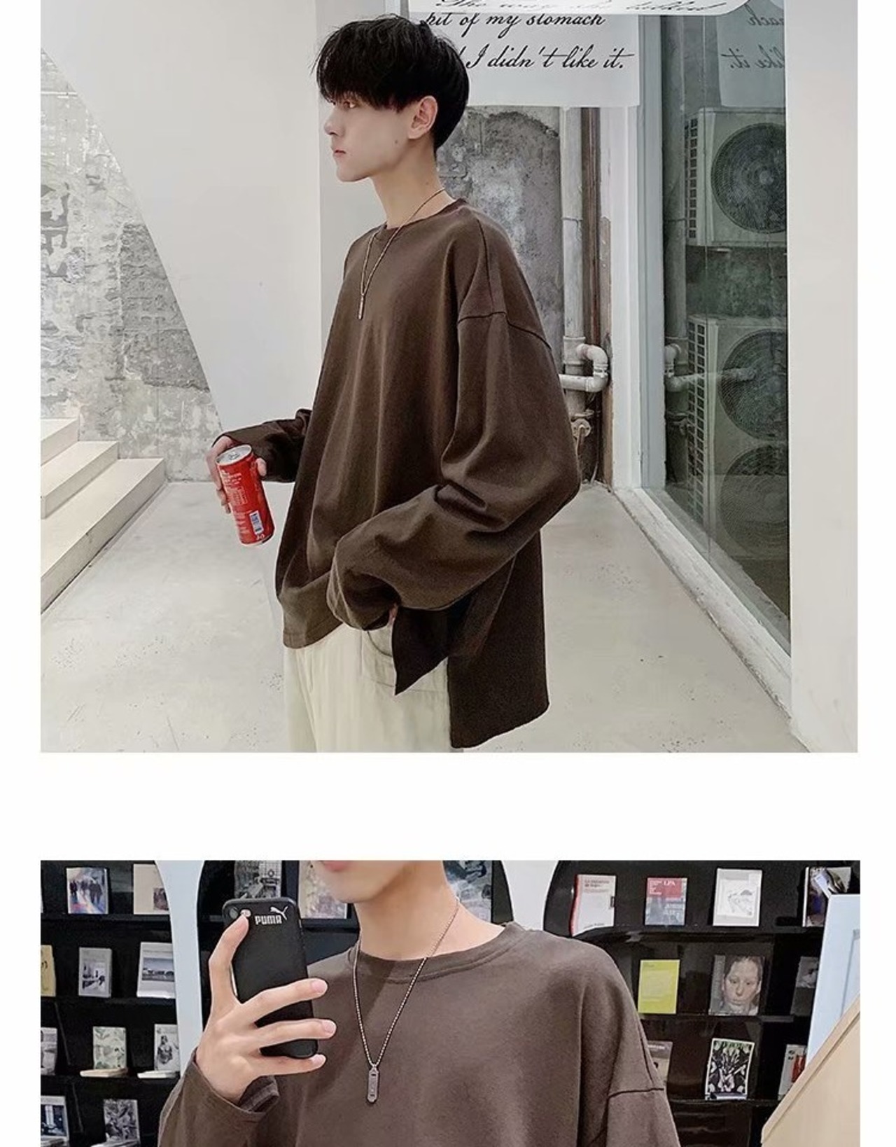 スプリングオータムソリッド カラーTシャツ シャツ カジュアルルーズスタイルセーター ロング 春物 秋物 ソリッドカラー 7/14 mi2019371492457