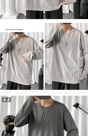 ソリッド カラーTシャツ シャツ スタイルルーズベーシックカジュアル ロング ソリッドカラー 7/14 mi2049384316598