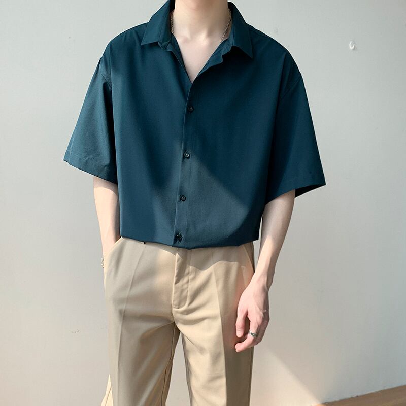 サマーソリッド カラースリーブシャツ アドバンスカジュアル 夏物 ソリッドカラー 7/14 mi2099285306565