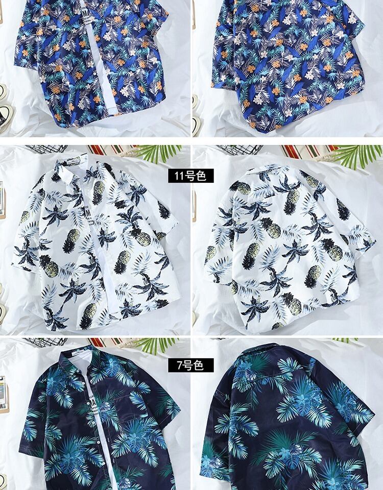 Flowerデザイン シャツ スタンダードルーズカジュアルスタイル レトロ ビーチ フラワーデザイン 7/14 mi2098246937216