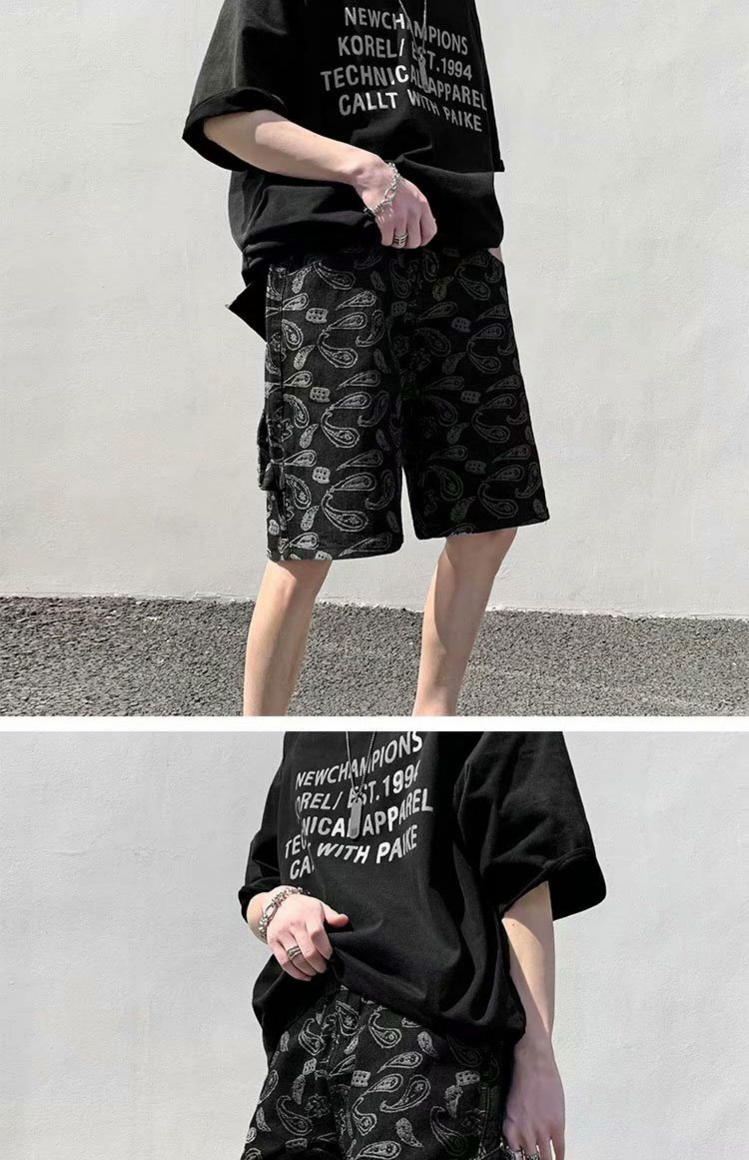 Flowerデザイン ジーンズ ルーズカジュアルパンツ オーバーオール ショーツ ストリート ブルマー フラワーデザイン 7/14 mi2094038108453