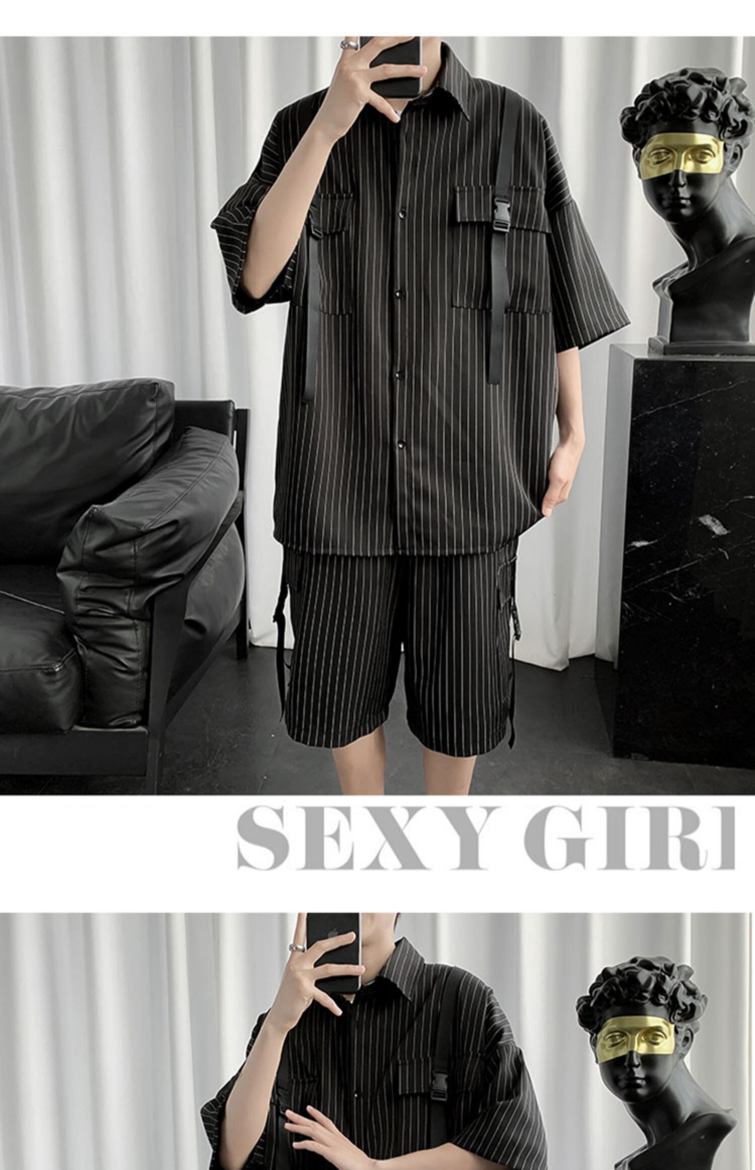 シャツ 自然派スタイルルーズストライプカジュアル 7/14 mi2014962170685
