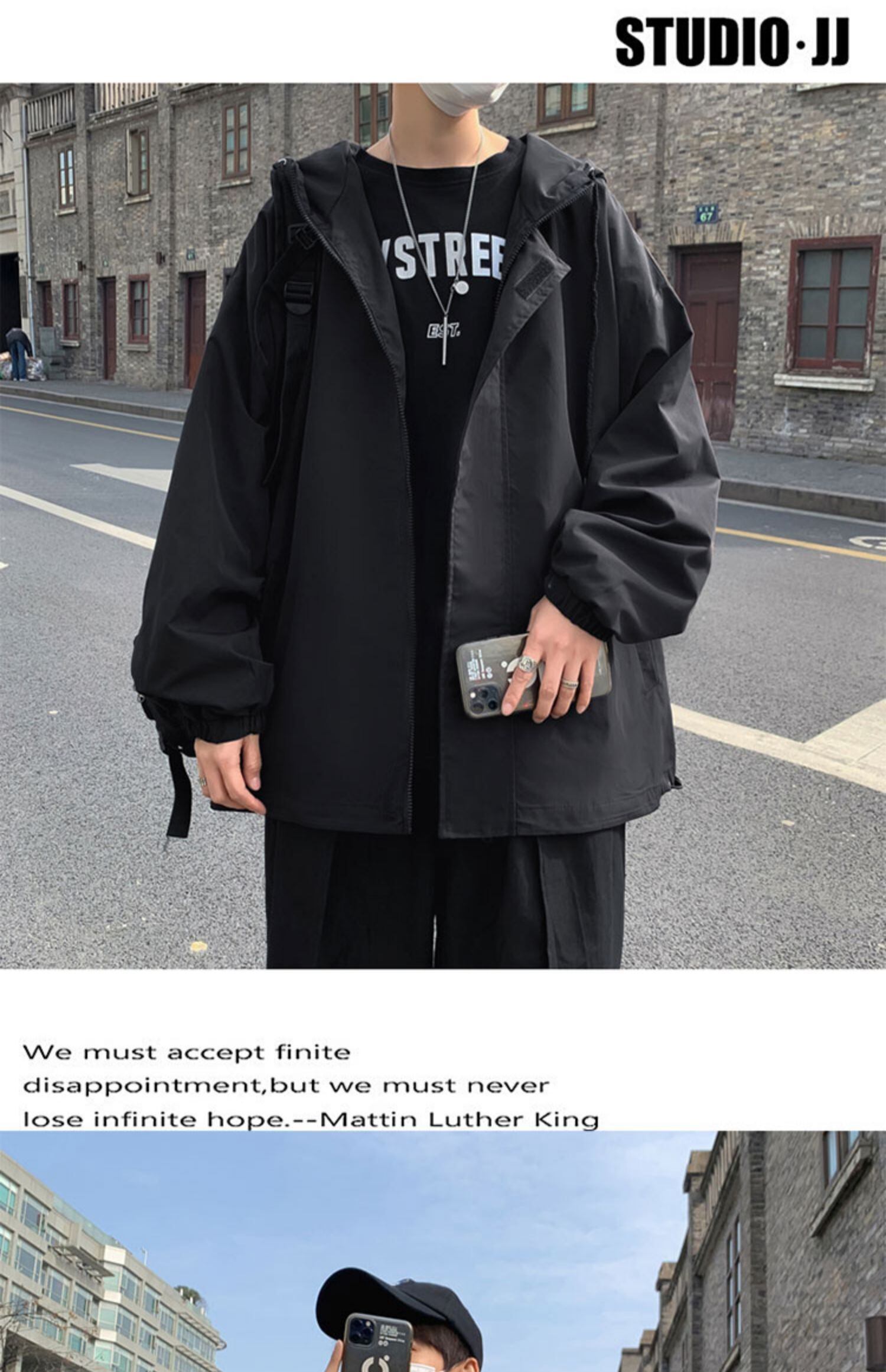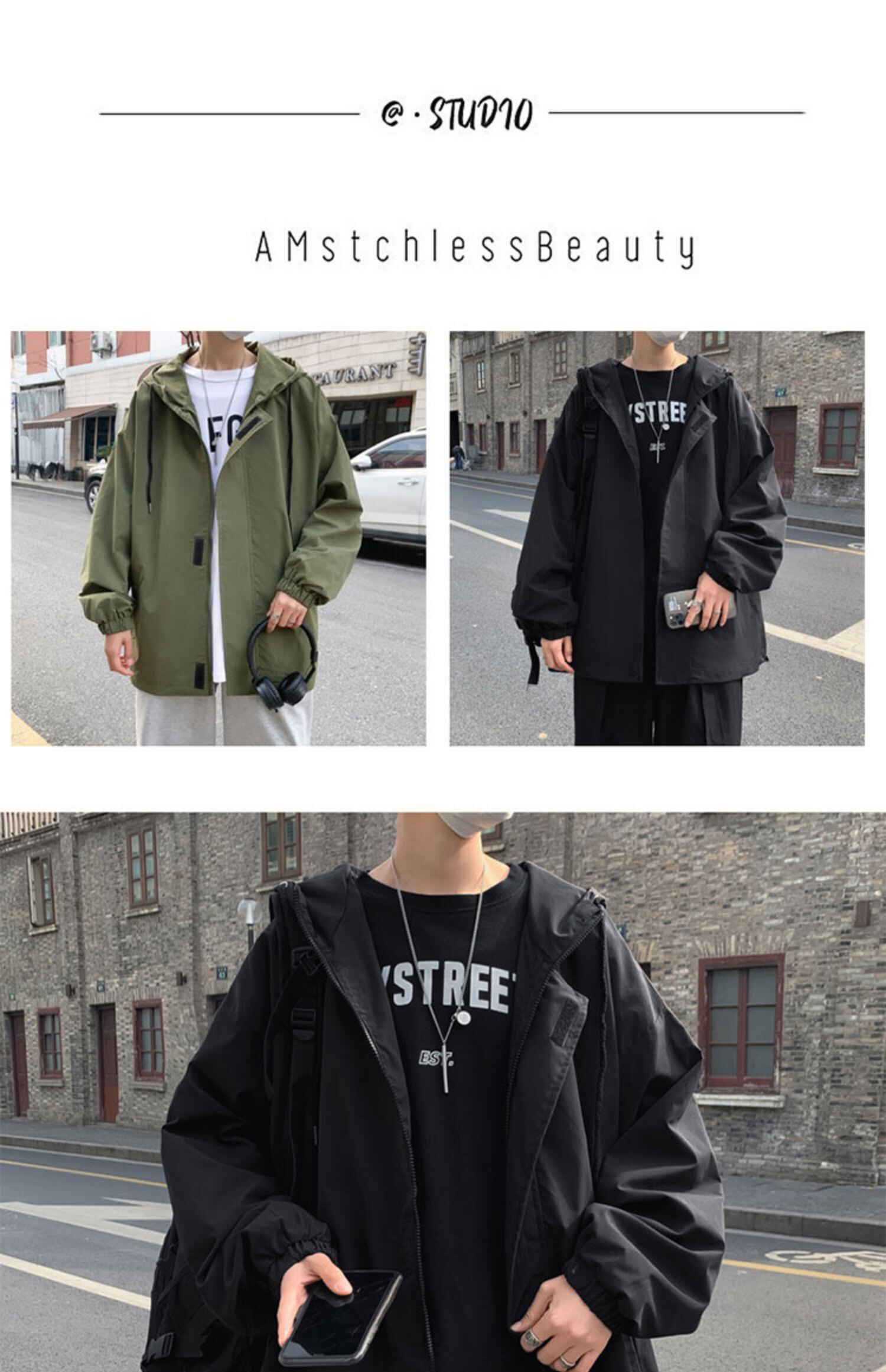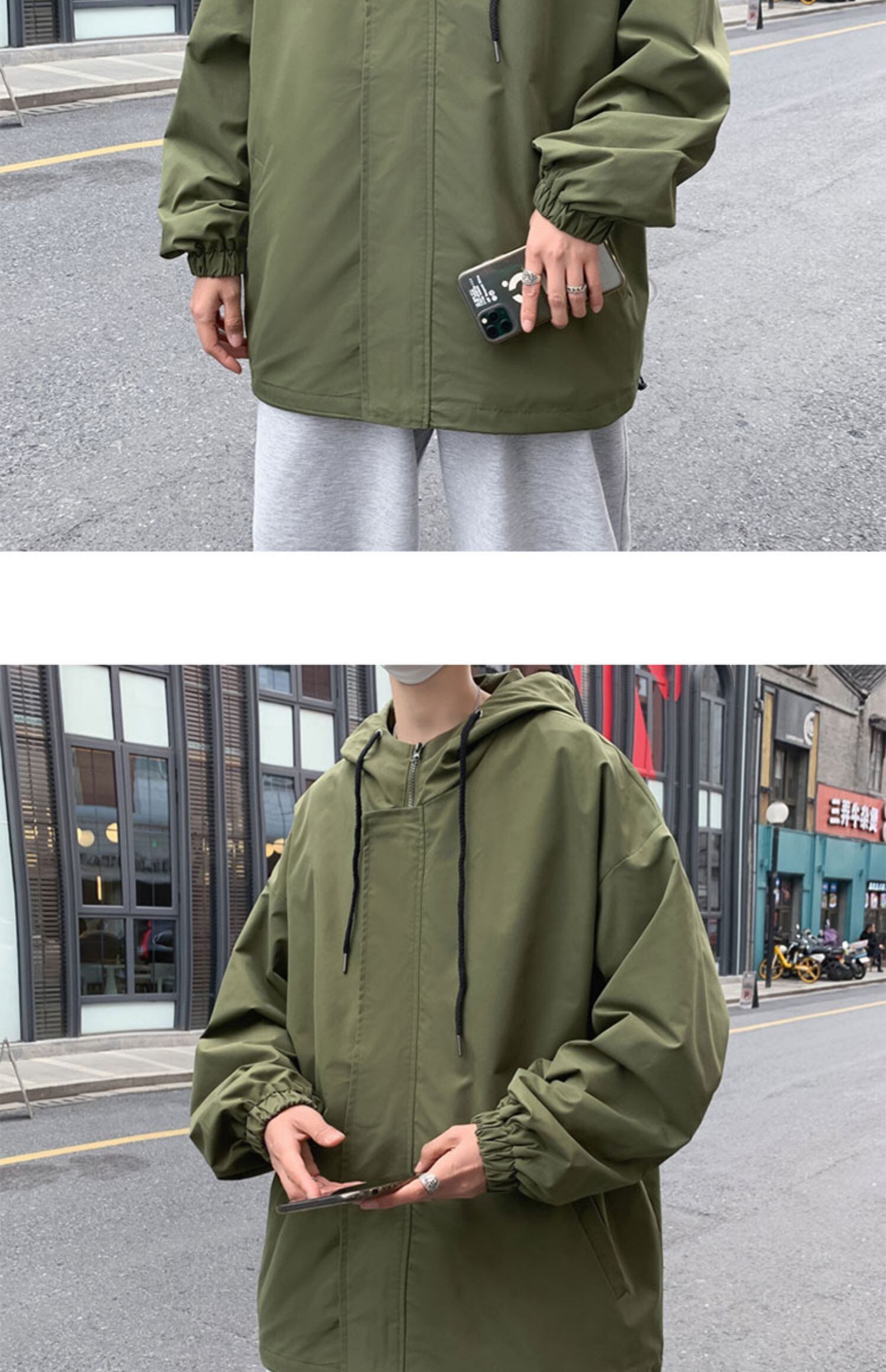 スプリングジャケット ルーズソリッド カラーフード 春物 ソリッドカラー 7/14 mi2058361035898