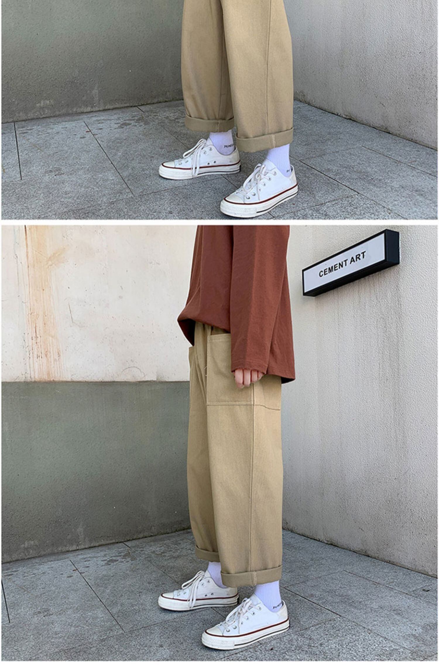 スプリングオータムオーバーオール ルーズパンツ スタイルソリッド カラーカジュアル 春物 秋物 ソリッドカラー 7/14 mi2066746498961