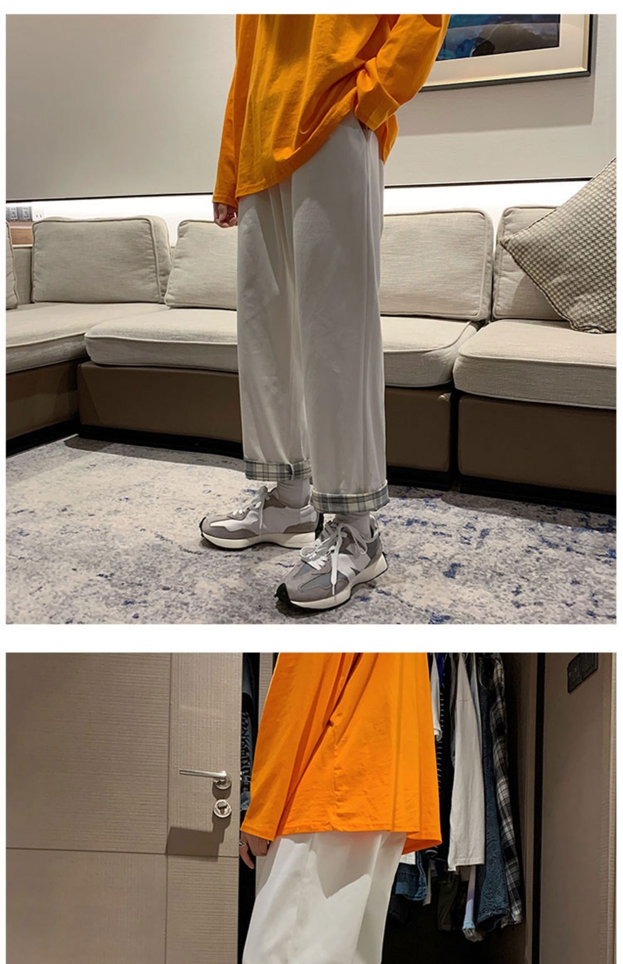 カジュアルパンツ ルーズスタイル格子柄オーバーオール ストリート 7/14 mi2014981007424