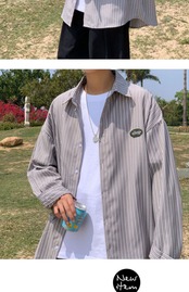 スプリングシャツ レディースルーズカジュアルジャケット 春物 ストライプ 7/14 mi2024763973376