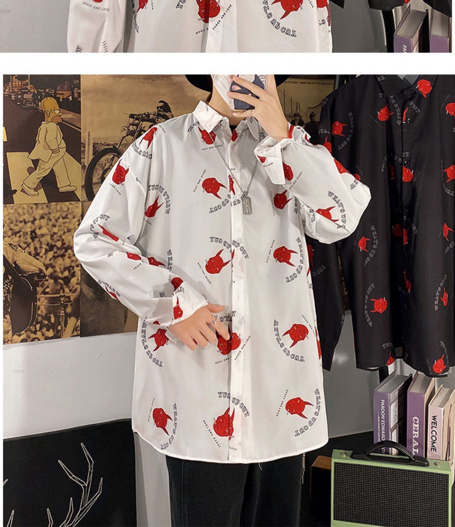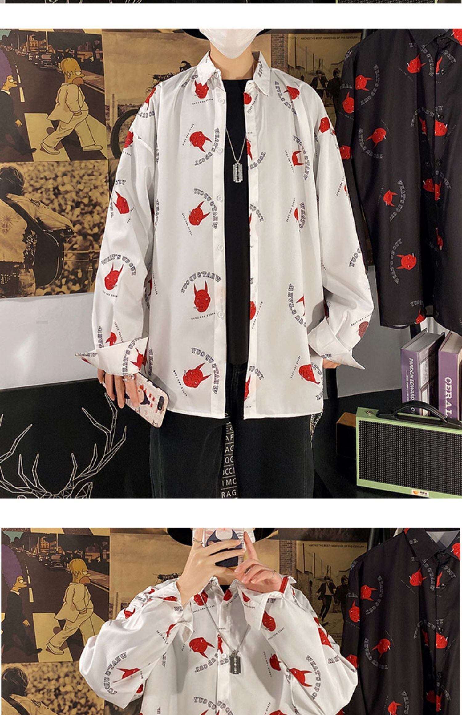 プリント柄シャツ ルーズカジュアルジャケット ロング 7/14 mi2021730394178