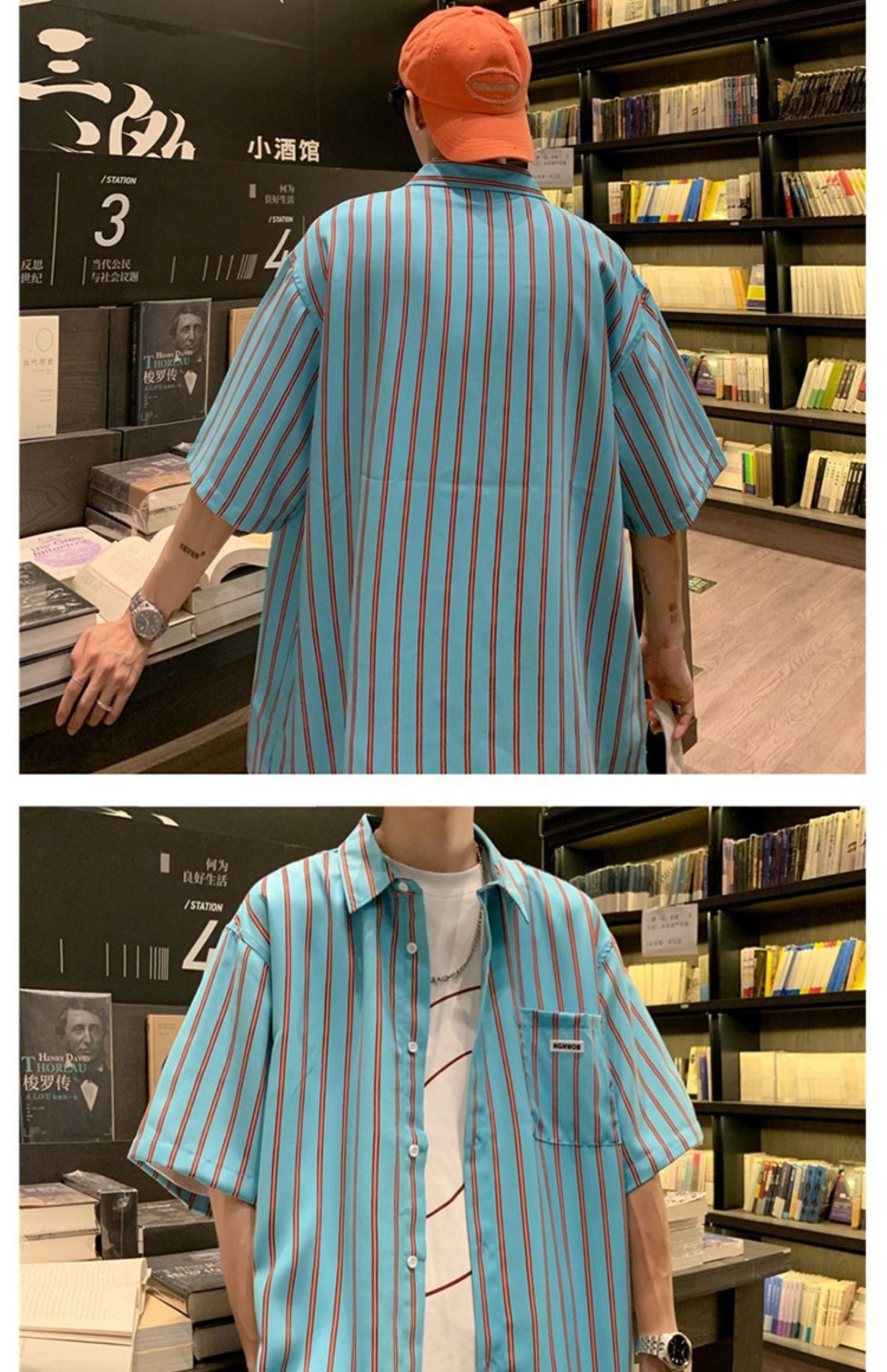 ストライプシャツ スタンダードルーズカジュアルスタイルジャケット レトロ 7/14 mi2038165617445