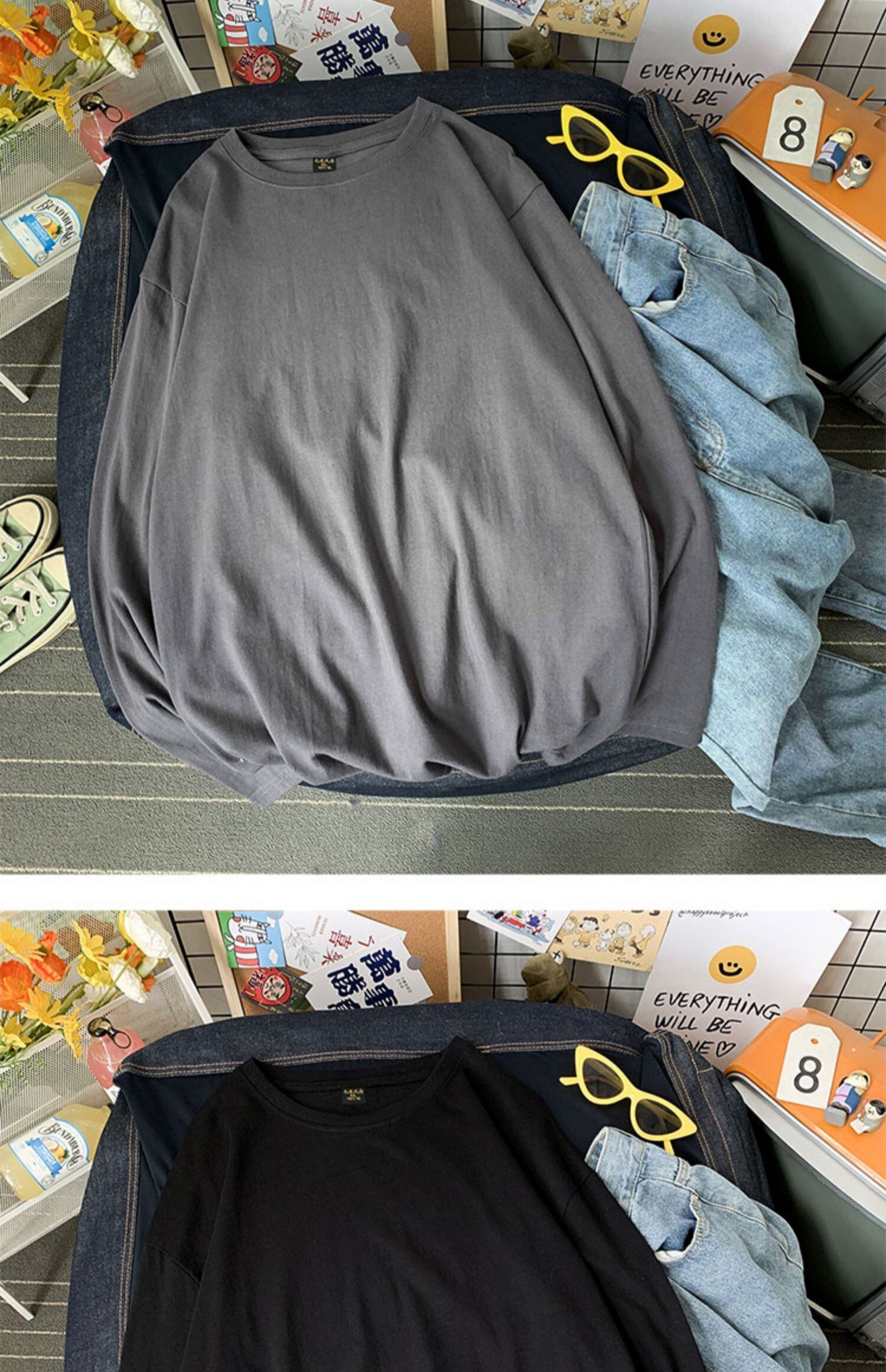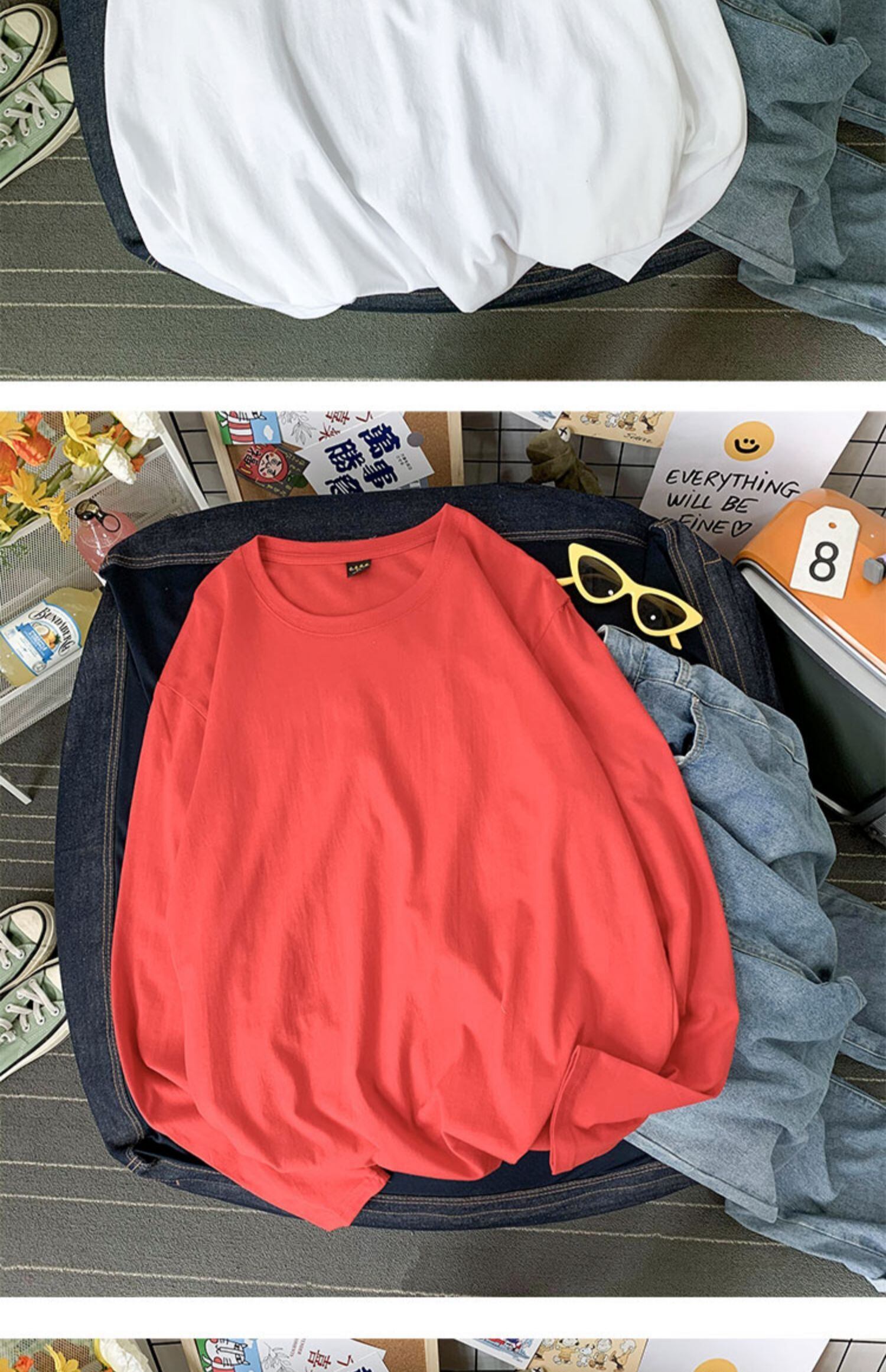 ホワイトTシャツ シャツ オータムルーズトップス カジュアルソリッド カラーベーシック ロング 秋物 ソリッドカラー 7/14 mi2039798841776