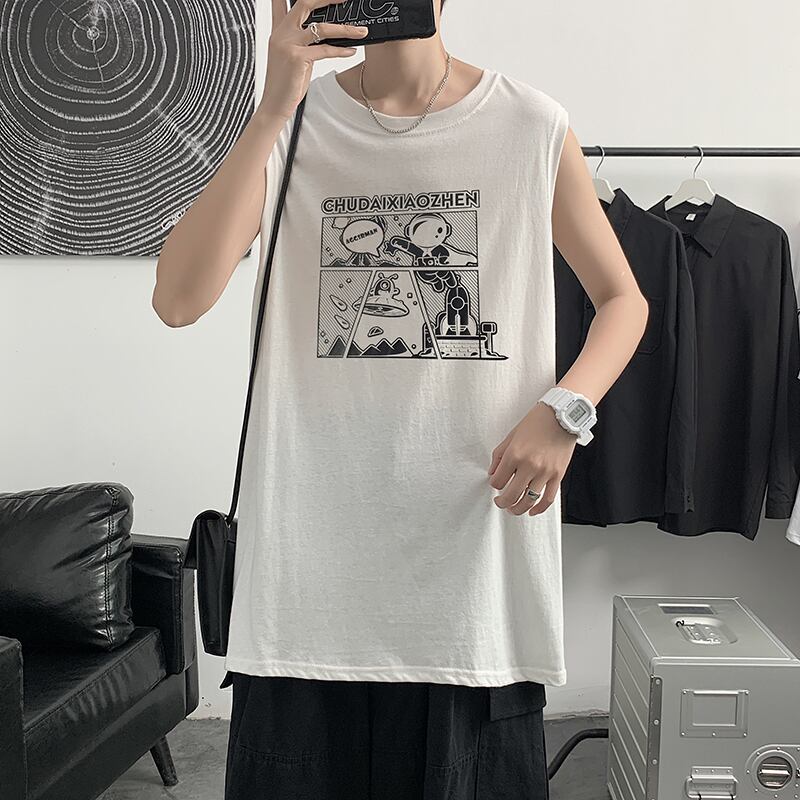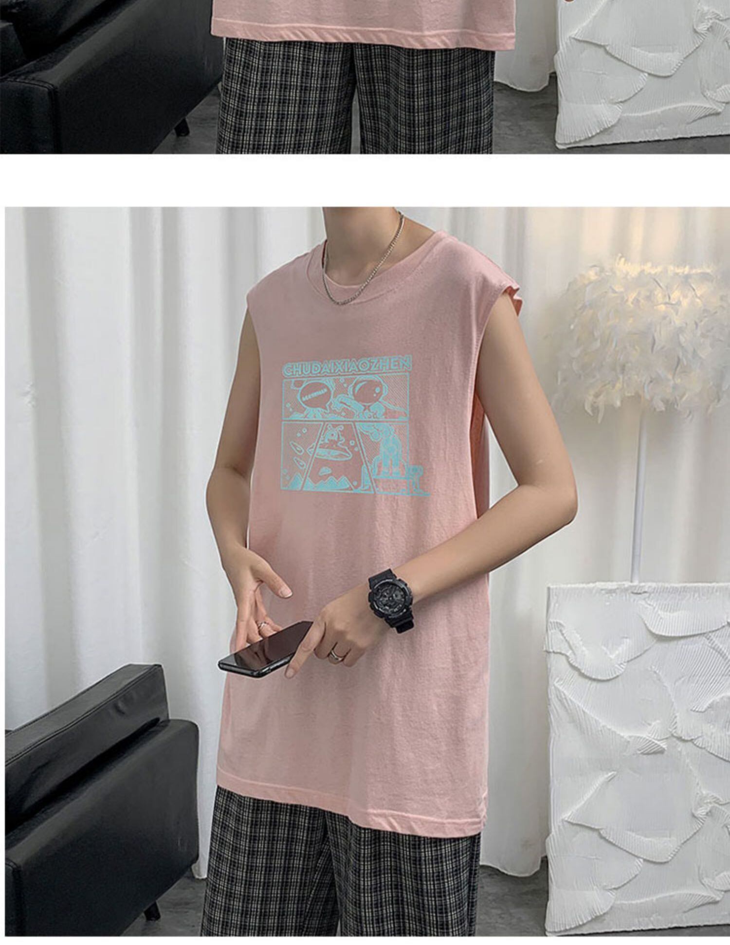 スタイルルーズカジュアルシャツ レッドノースリーブTシャツ 7/14 mi2068308299761