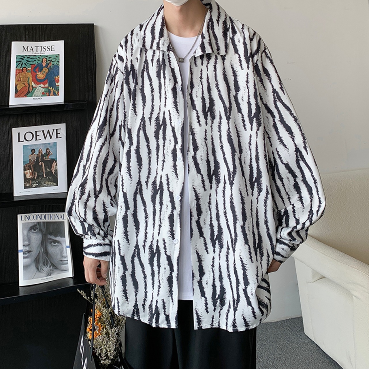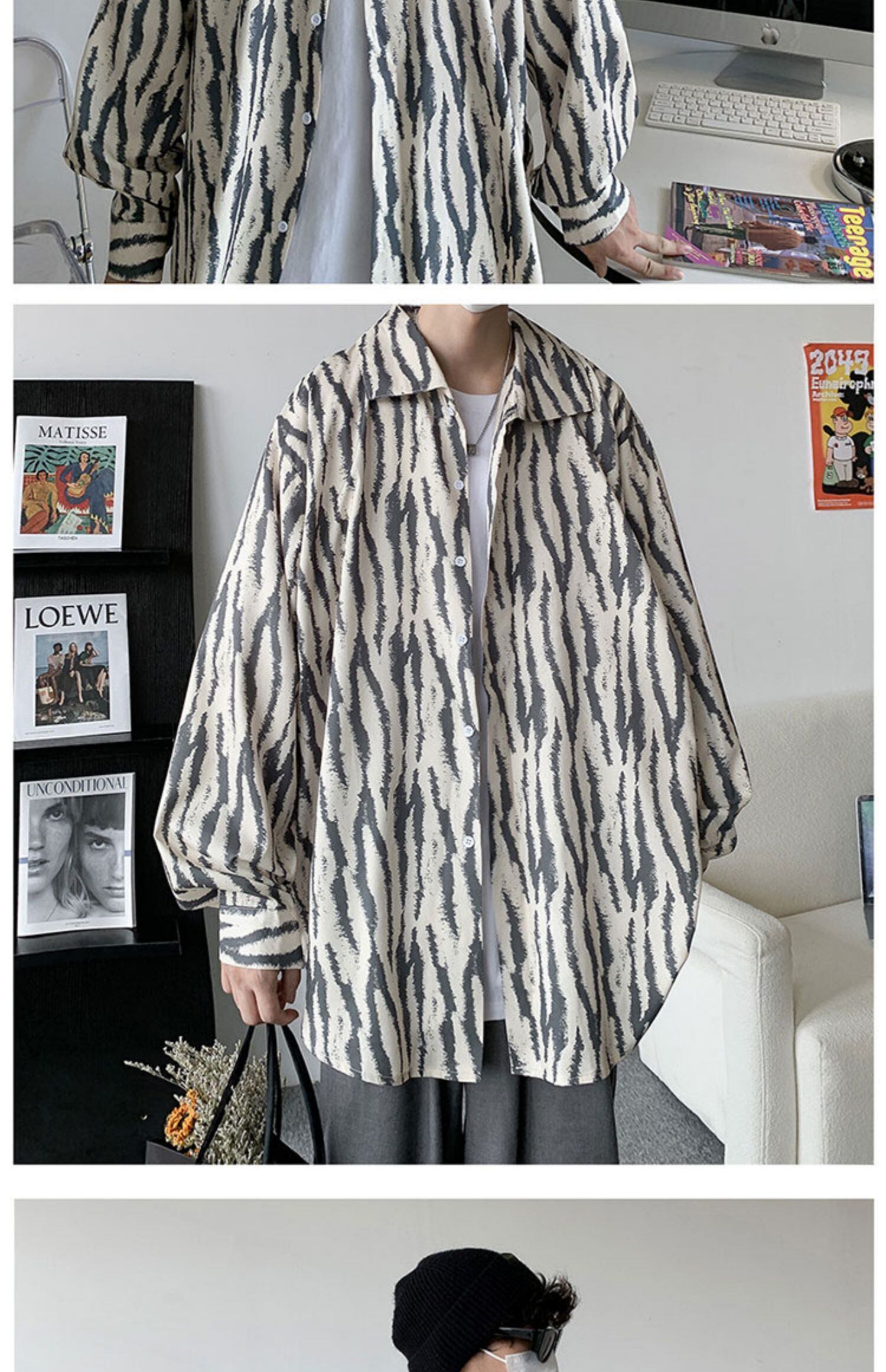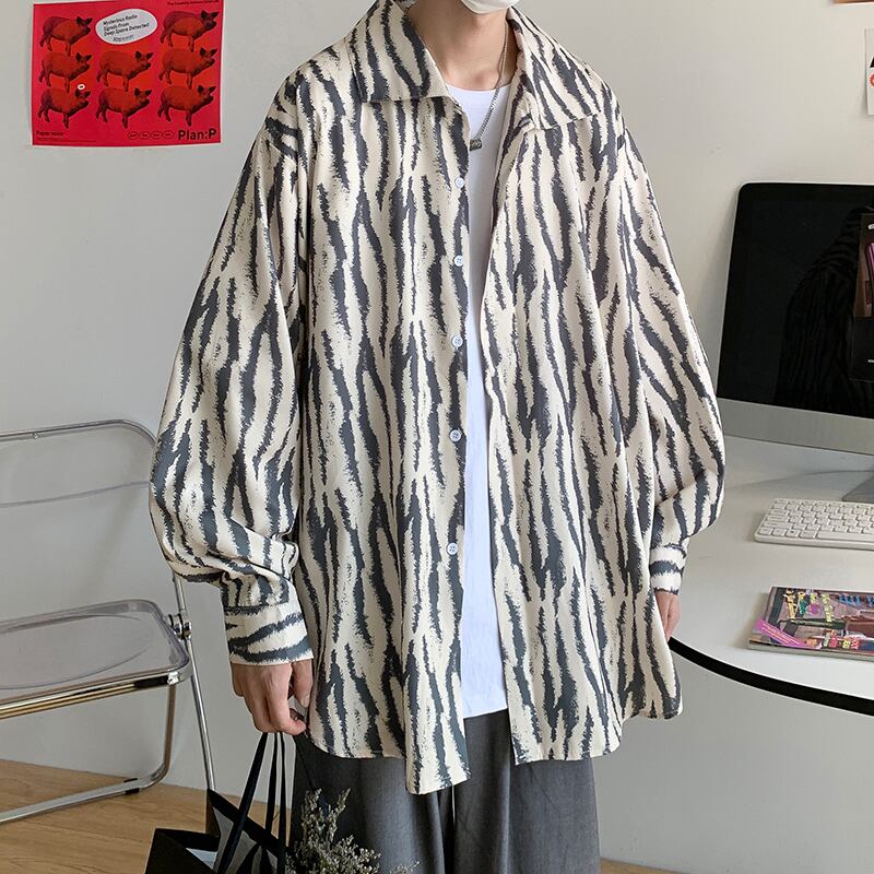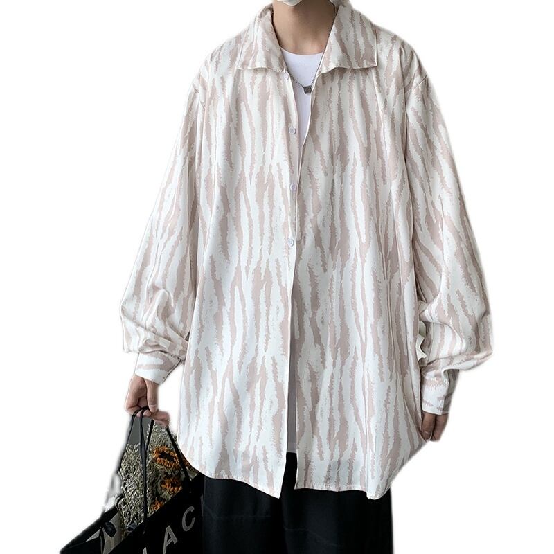ストライプシャツ スタイルルーズカジュアルジャケット ロング 7/14 mi2022250096786