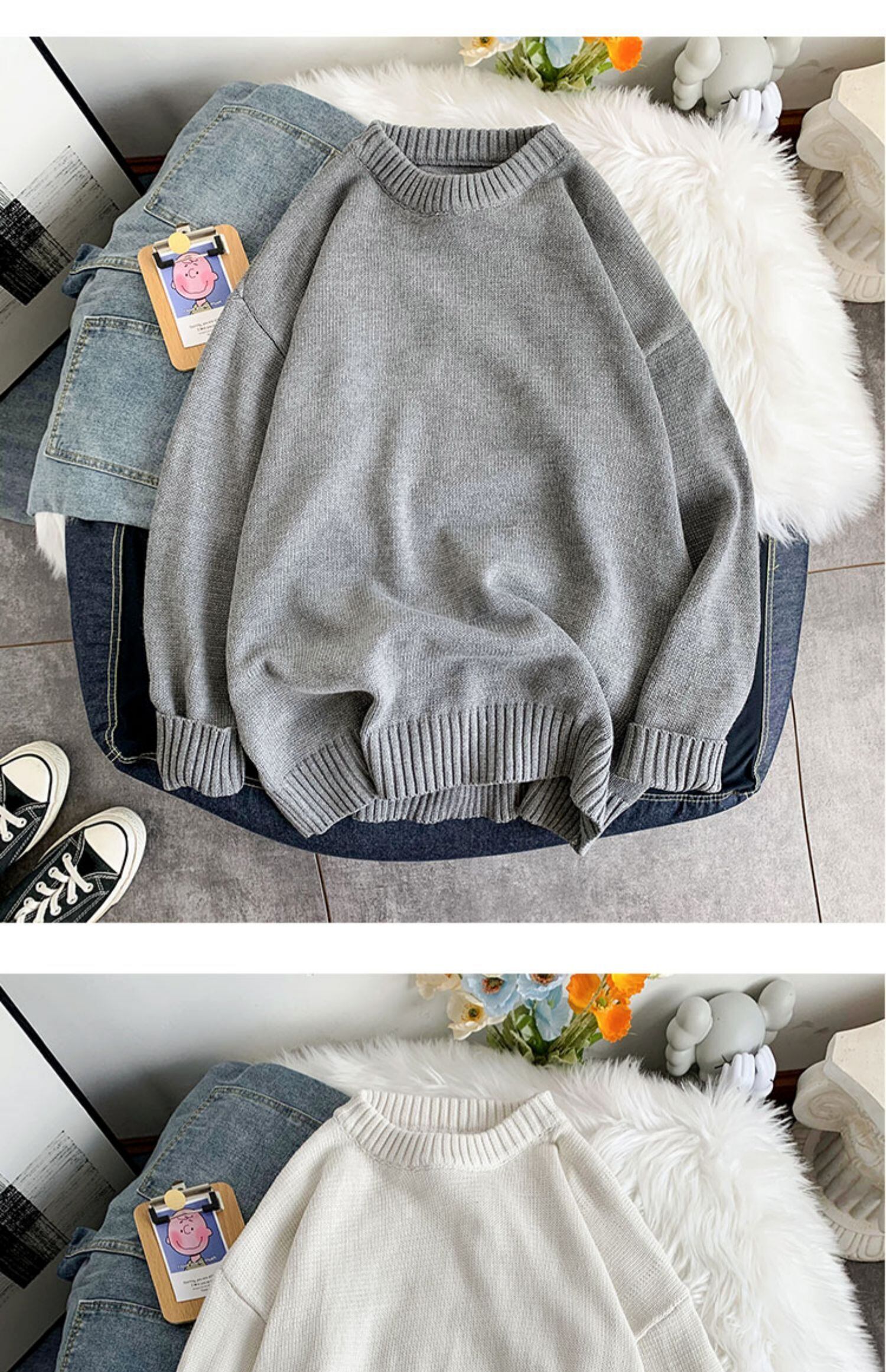 カラーラウンドネックセーター スプリングオータムルーズカジュアルニット 春物 秋物 Oネック 7/14 mi2016065723065