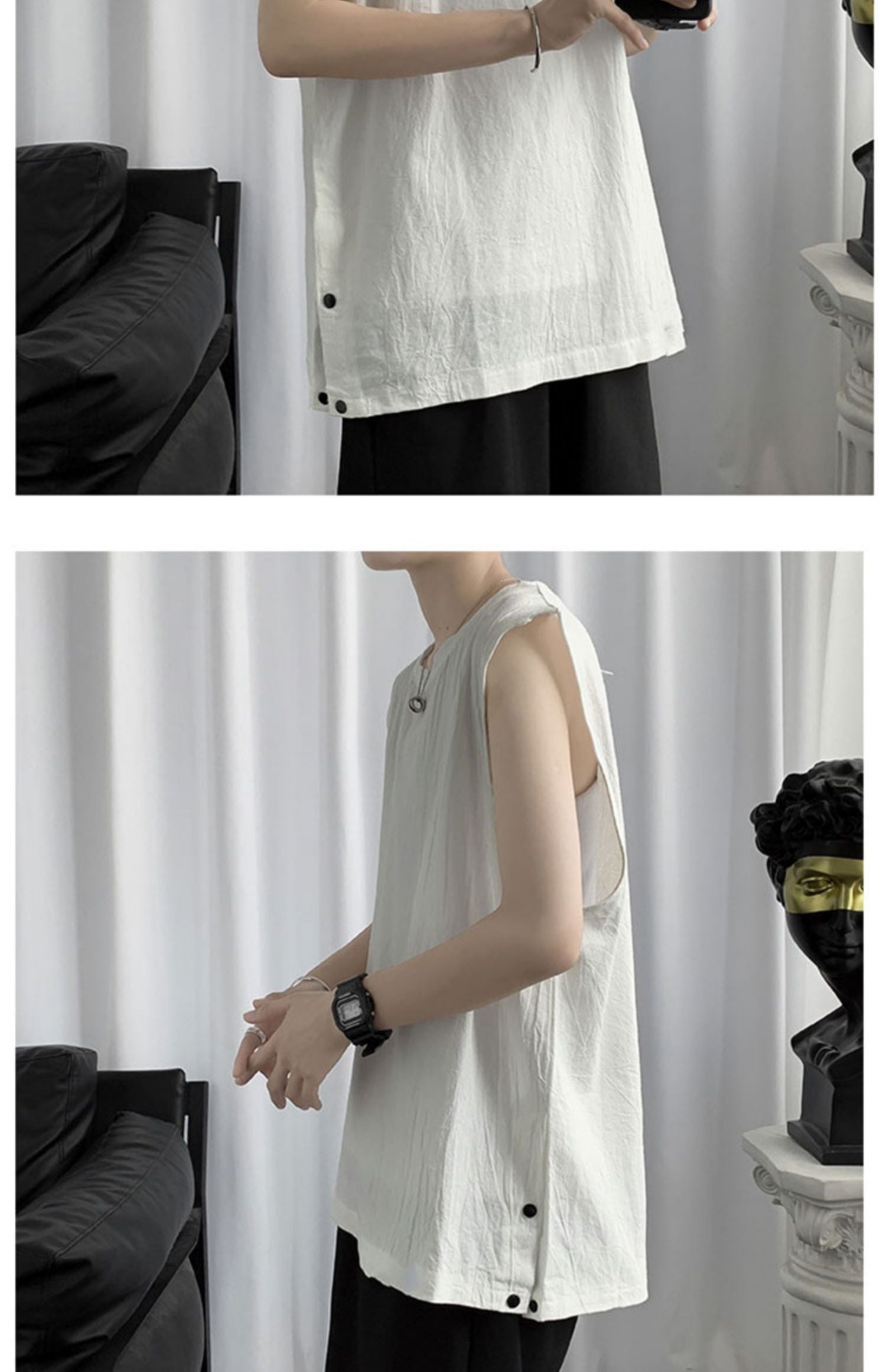 サマールーズカジュアルソリッド カラーブレストノースリーブホワイトTシャツ 夏物 ソリッドカラー 7/14 mi2080428722359
