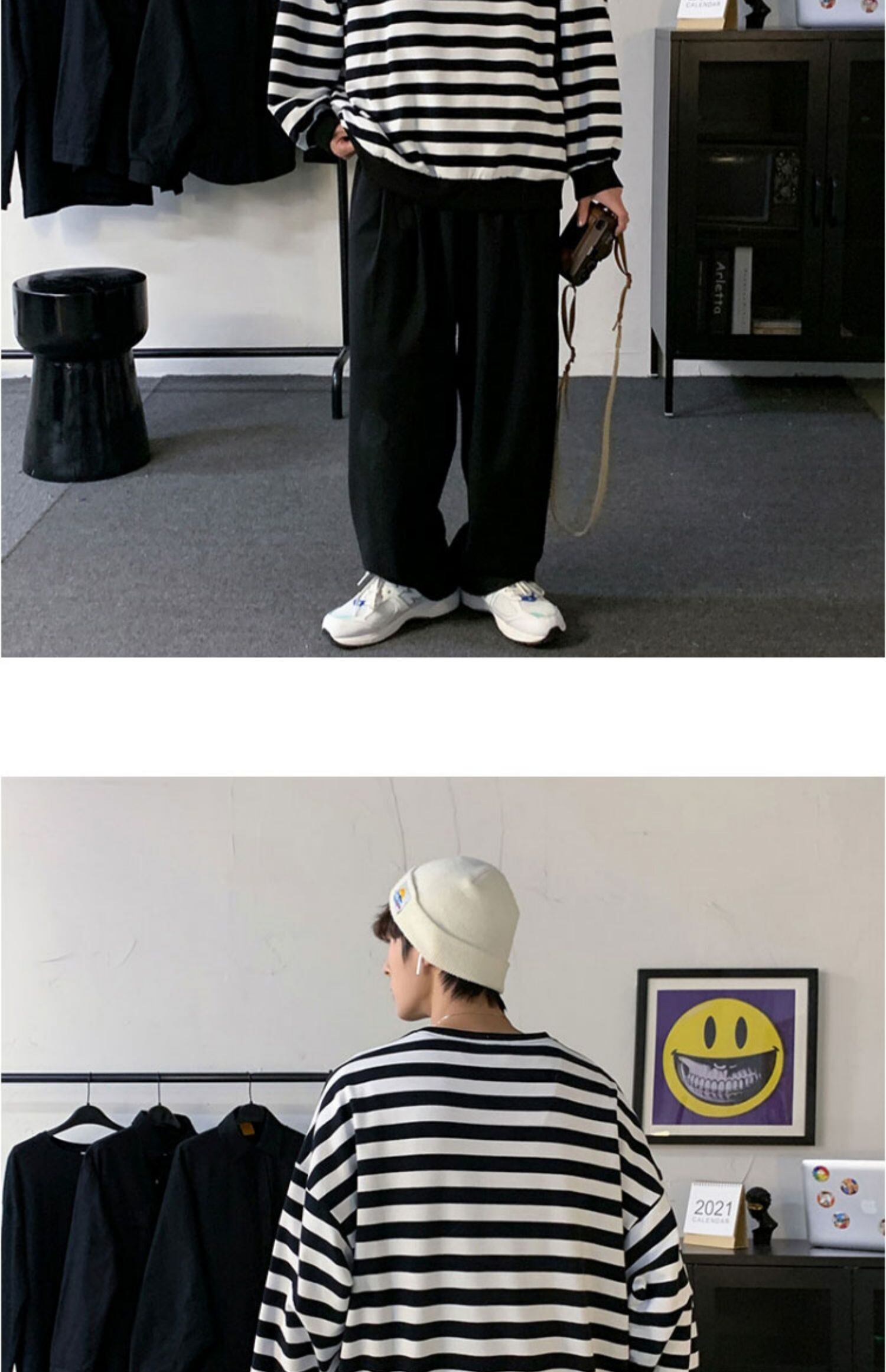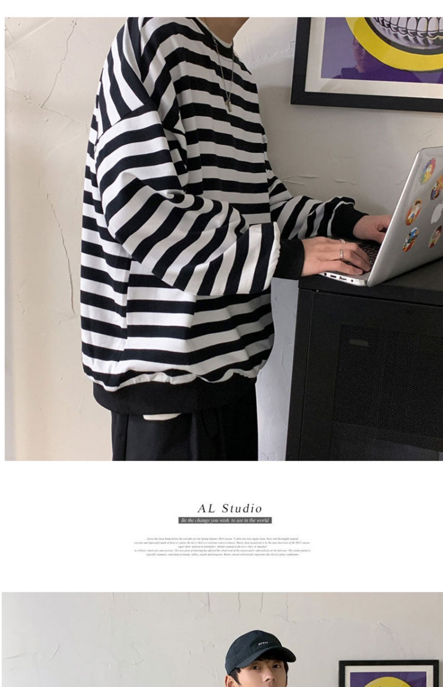 オータム薄手ストライプセーター カラールーズラウンドネックトップス カジュアルTシャツ ロング 秋物 Oネック 7/14 mi2035569951744